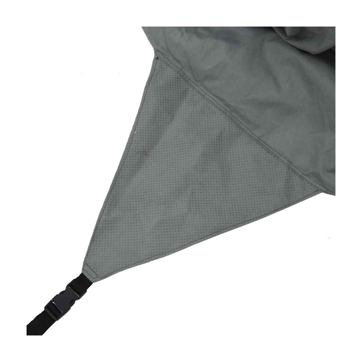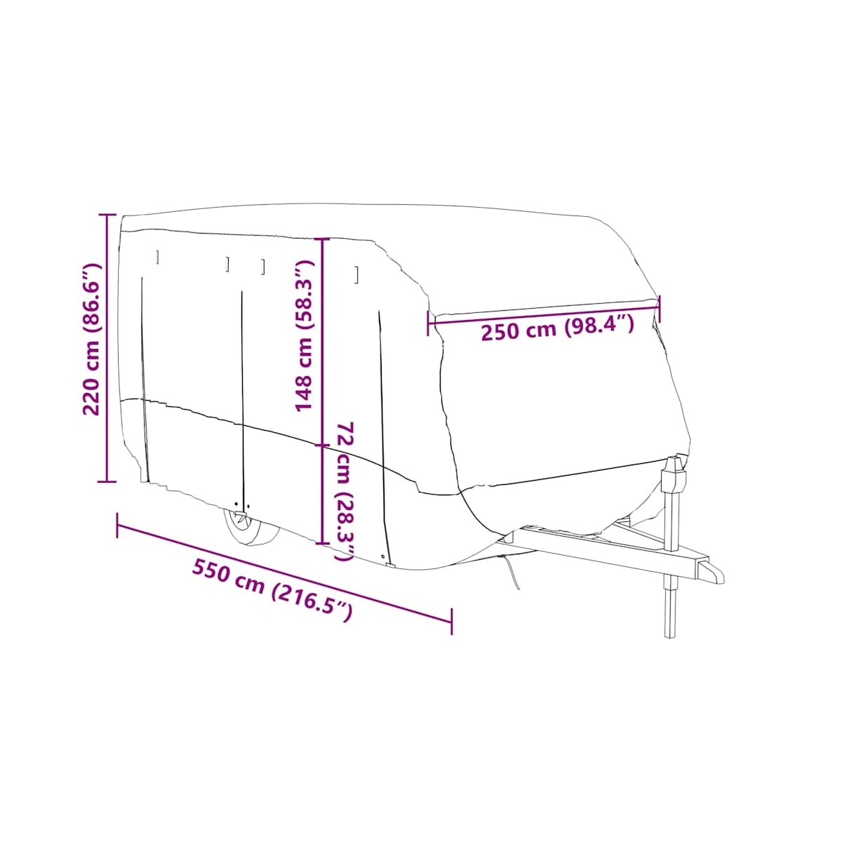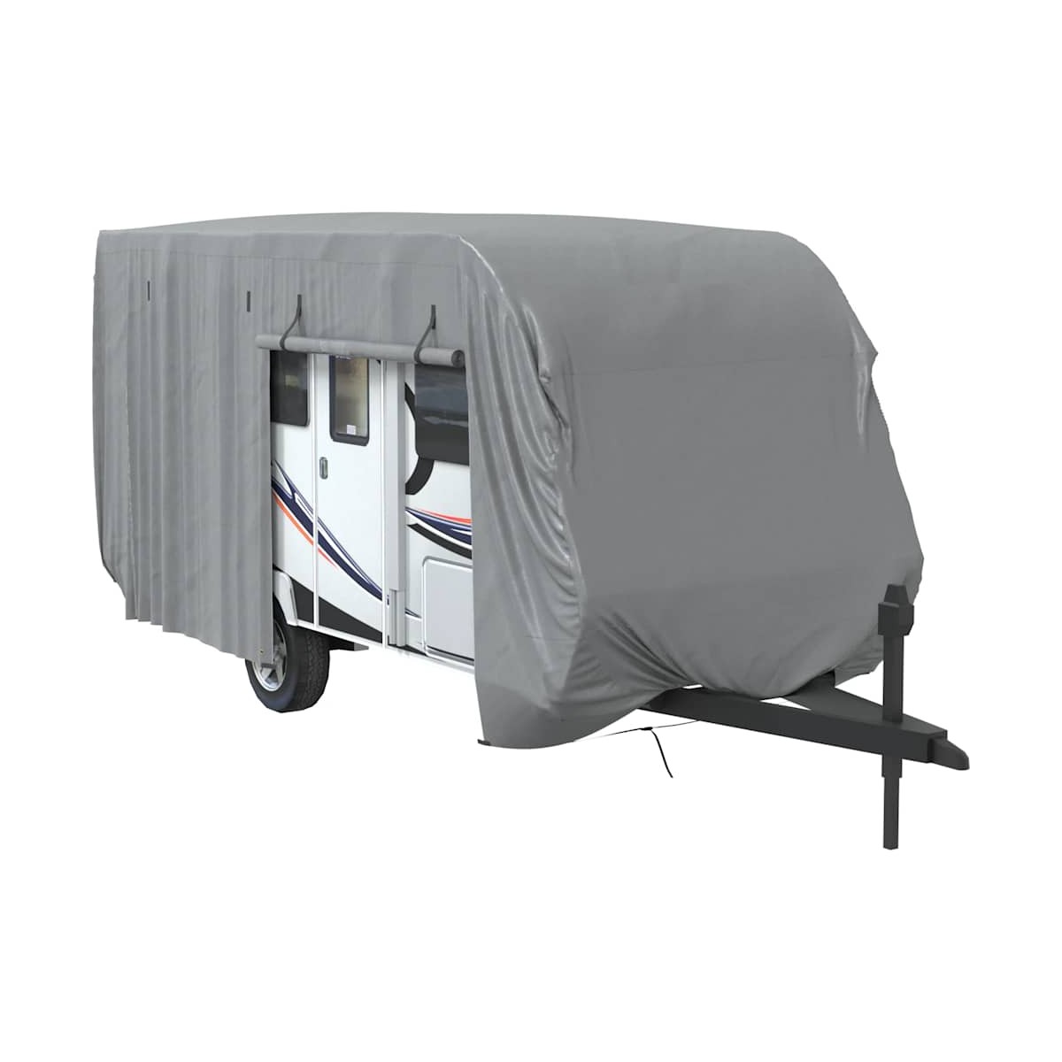 Esta funda para caravanas proporciona una protección esencial para tu caravana, manteniéndola seca y limpia incluso cuando llueve o nieva. Protección para todo tipo de clima: Esta funda para caravana está fabricada con una tela no tejida resistente y transpirable de 3 capas en la parte superior y una sola capa en los laterales, que ofrece una excepcional resistencia al agua y a los desgarros junto con protección contra los rayos UV. Protege eficazmente tu vehículo de la lluvia, la nieve, los vientos fuertes, los excrementos de pájaros, el polvo y los arañazos.Diseño a prueba de viento: Los dobladillos elásticos de la funda garantizan un ajuste perfecto a tu vehículo, mientras que las correas ajustables con hebillas en la parte inferior la mantienen en su sitio, incluso en días de viento fuerte. Además, la funda tiene sujetadores de gancho y bucle alrededor de las cremalleras para un ajuste seguro.Conveniente y accesible: Los paneles laterales con cremallera se pueden enrollar para acceder cómodamente a la puerta de tu vehículo cuando sea necesario, mientras que las ventanas se pueden abrir fácilmente para una mayor ventilación.Fácil de guardar: Esta funda de vehículo viene con una práctica bolsa de almacenamiento, por lo que es fácil de guardar cuando no está en uso. Información útil:Antes de comprar, por favor, toma las medidas exactas de tu vehículo para asegurarse de que selecciona el tamaño correcto.