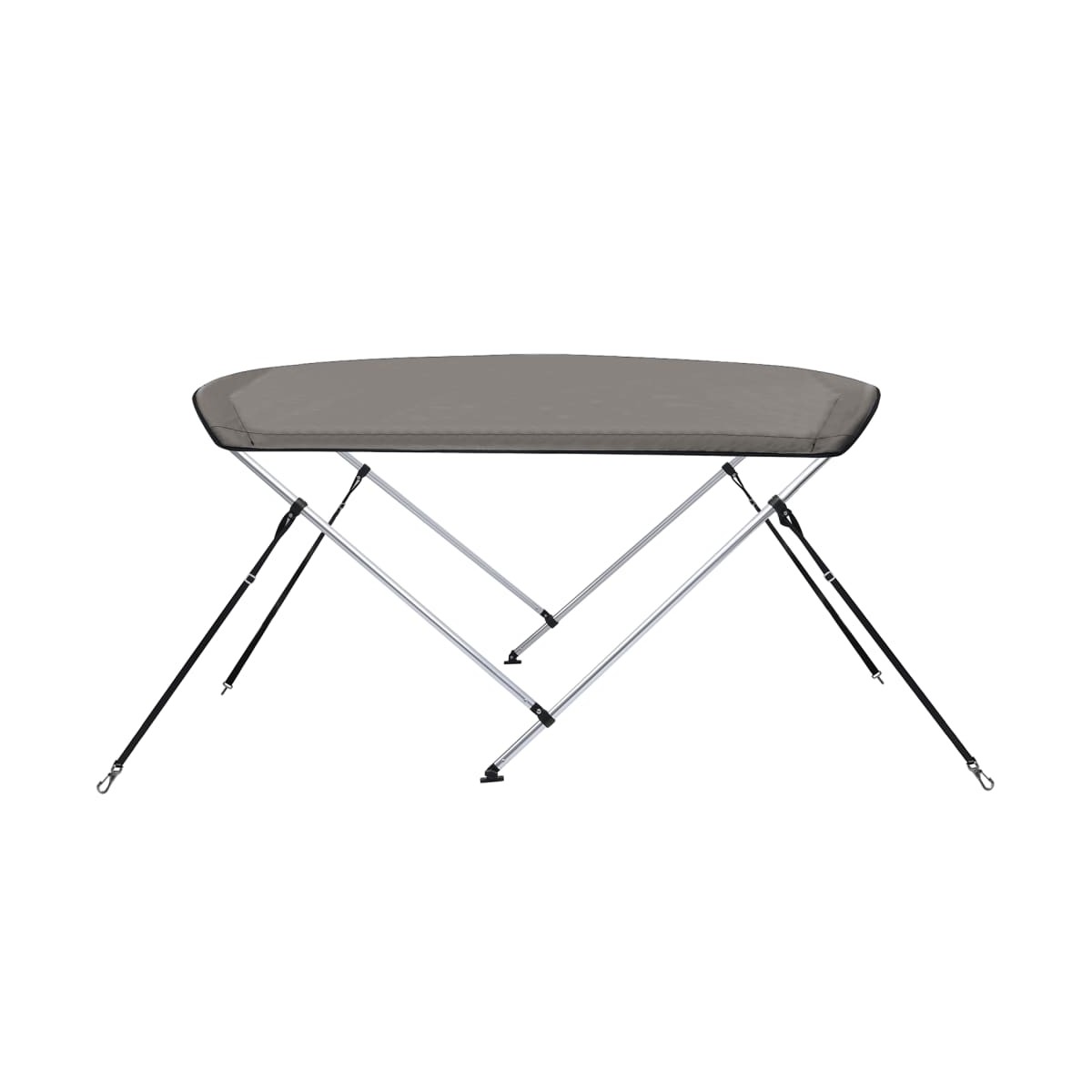 Esta capota bimini de 2 proas con paredes laterales desempeña un papel eficaz para protegerlo de la luz solar directa y las condiciones climáticas adversas como el granizo o la lluvia. Material duradero: Esta capota bimini de 2 arcos está hecha de 100% poliéster con un revestimiento de PU, lo que la hace resistente a los rayos UV, al agua y antimoho durante años de servicio.Estructura robusta: El toldo superior bimini tiene un marco de aluminio y un diseño de marco de 2 arcos se suma a su estabilidad.Larga duración: Los ganchos ojales, las tuercas de montaje y las perillas están hechos de acero inoxidable 316 de grado marino, que es anticorrosión y especialmente adecuado para uso a largo plazo. Información útil:Usa la bota para proteger la tela cuando no use la parte superior del bimini y pliegue la capota cuando la velocidad de la embarcación supere los 25 nudos.