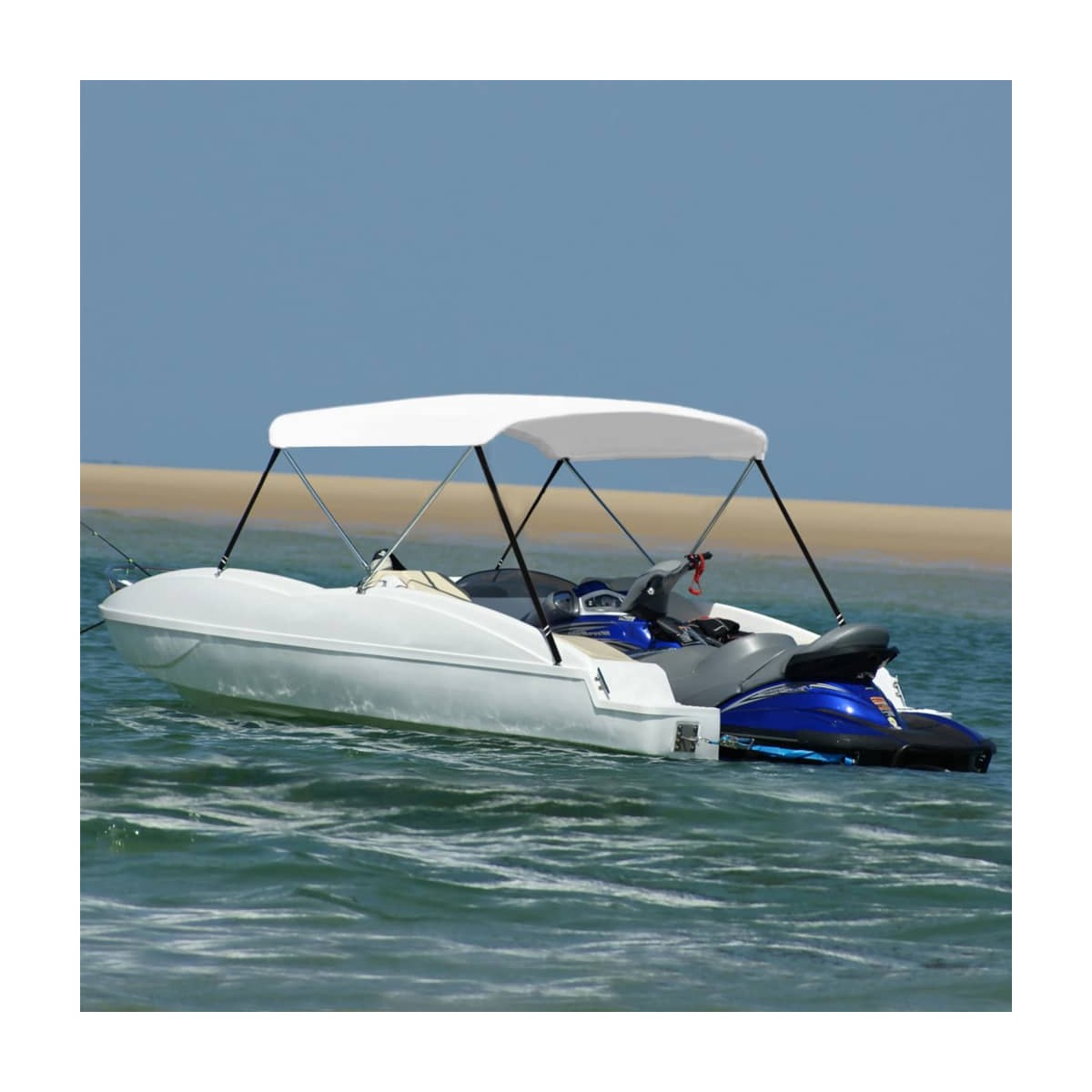 Este toldo bimini de calidad tiene un diseño de armazón de 2 arcos, que desempeña un papel eficaz a la hora de protegerte de la luz solar directa y de las condiciones meteorológicas adversas, como el granizo o la lluvia. Con una altura de 110 cm, este dosel de barco es ajustable de 145 a 155 cm de ancho, proporcionándote un espacio muy grande mientras disfrutas de tus experiencias de navegación. Fabricado en 100% poliéster con revestimiento de PU, es resistente a los rayos UVA y al agua y duradero durante años. El cuadro de aluminio anodizado aporta estabilidad. Los ganchos, las tuercas de montaje y las perillas están hechos de acero inoxidable 316 de grado marino, que es anticorrosión, y es especialmente adecuado para uso a largo plazo. Nota importante: Utiliza el baúl para proteger la tela cuando no uses el toldo bimini y pliega el toldo cuando la embarcación supere las 25 mph.