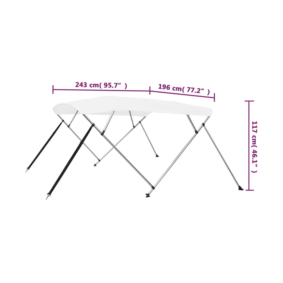 Este toldo bimini de calidad tiene un diseño de armazón de 4 arcos, que desempeña un papel eficaz a la hora de protegerte de la luz solar directa y de las condiciones meteorológicas adversas, como el granizo o la lluvia. Con una altura de 137 cm, este dosel de barco podría ser ajustable de 185 a 198 cm de ancho, proporcionándote un espacio muy grande mientras disfrutas de tus experiencias de navegación. Fabricado en 100% poliéster con revestimiento de PU, es resistente a los rayos UVA y al agua y duradero durante años. El cuadro de aluminio anodizado aporta estabilidad. La entrega también incluye 2 correas de nailon ajustables, 2 postes de apoyo traseros, 1 bota de almacenaje a juego con cremallera y accesorios de montaje de acero inoxidable. Los ganchos, las tuercas de montaje y las perillas están hechos de acero inoxidable 316 de grado marino, que es anticorrosión, y es especialmente adecuado para uso a largo plazo. La cubierta de lona es fácil de montar. Nota importante: Utiliza el baúl para proteger la tela cuando no uses el toldo bimini y pliega el toldo cuando la embarcación supere las 25 mph.