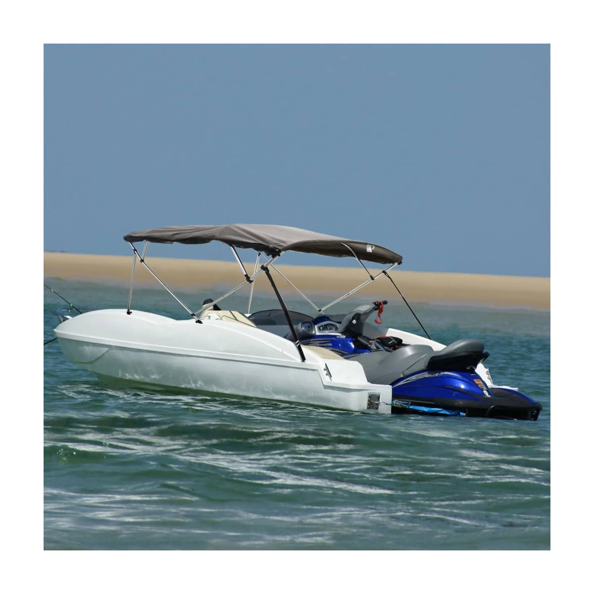 Esta capota bimini de 4 arcos con paredes laterales desempeña un papel eficaz para protegerte de la luz solar directa y las condiciones climáticas adversas como el granizo o la lluvia. Material duradero: Esta capota bimini de 4 arcos está hecha de 100% poliéster con un revestimiento de PU, lo que la hace resistente a los rayos UV, al agua y antimoho durante años de servicio.Estructura robusta: El toldo superior bimini tiene un marco de aluminio y un diseño de marco de 4 arcos se suma a su estabilidad.Larga duración: Los ganchos ojales, las tuercas de montaje y las perillas están hechos de acero inoxidable 316 de grado marino, que es anticorrosión y especialmente adecuado para uso a largo plazo.Diseño práctico: Este toldo bimini proporciona cobertura de sombra para ambos lados, protegiendo eficazmente contra la luz solar directa y la lluvia. Además, la pared lateral se puede enrollar y sujetar fácilmente en la parte superior cuando quieras. Información útil:Usa la bota para proteger la tela cuando no use la parte superior del bimini y pliegue la capota cuando la velocidad de la embarcación supere los 25 nudos.