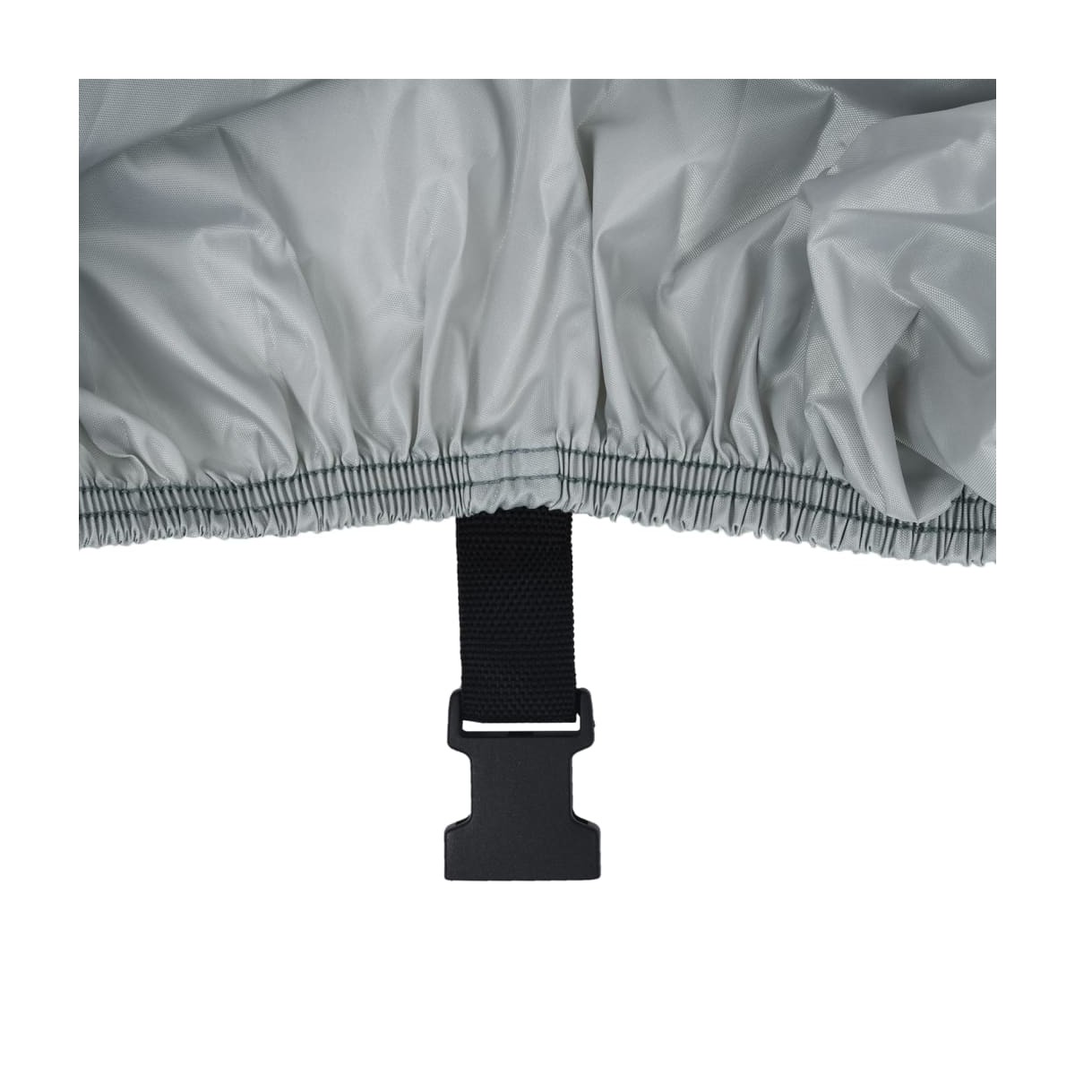 Esta funda para barca sirve para la mayoría de tamaños y estilos de cascos estándar, y es adecuada para usos de amarre y de almacenamiento. La funda para almacenar barcas está hecha de duradera tela oxford, que es resistente al moho y repele el agua para proteger el barco de las condiciones meteorológicas adversas. El toldo para barco también está equipado con correas de hebilla de desenganche rápido que te permiten atar la cubierta al barco y evitar que salga volando. Además, viene con una bolsa de almacenaje para un transporte cómodo y protección cuando no la uses. Nota:Para elegir la cubierta del tamaño correcto, ¡mida tu barco en primer lugar!1. Mide la longitud de la línea central.2. Mide el ancho del travesaño3. Si la longitud del barco se encuentra entre los tamaños de cubierta, eliige el tamaño más grande para un mejor ajuste.