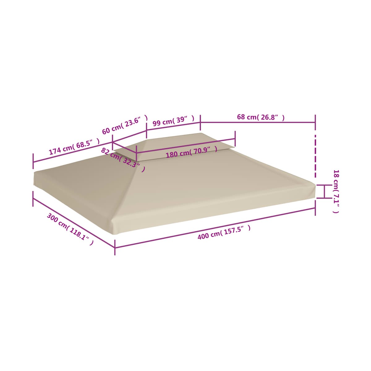¡Disfruta del espacio al aire libre sin quemarte a partir de ahora! ¡Esta cubierta superior de repuesto para tu cenador te brinda una nueva oportunidad para relajarte y refrescarte! Esta maravillosa cubierta para cenador cuenta con recubrimiento de PVC, lo que hace que sea resistente al agua. Protege contra el sol abrasador, las fuertes lluvias y otras condiciones climáticas adversas. Sin embargo, asegúrate de que la funda no acumule agua por tu seguridad. Cada cubierta tiene 8 arandelas que funcionan como rebosaderos en caso de fuertes lluvias. Ya que están en el lateral de la cubierta, no afectará la protección contra la lluvia cuando estás sentado debajo. La tela pesa 310 g/m², y con esquinas reforzadas para una mayor durabilidad, este refugio perfecto será una dura prueba durante todo el año para poder celebrar reuniones agradables y alegres con su familia o amigos. Ten en cuenta que este artículo es la cubierta de la parte superior solamente. La entrega no incluye la estructura del cenador. Es una cubierta de cenador de alta calidad, para aquellos que ya tienen la estructura. También ofrecemos 16 piezas de sujetadores de gancho y anillo para facilitar la instalación y el montaje a su cenador.