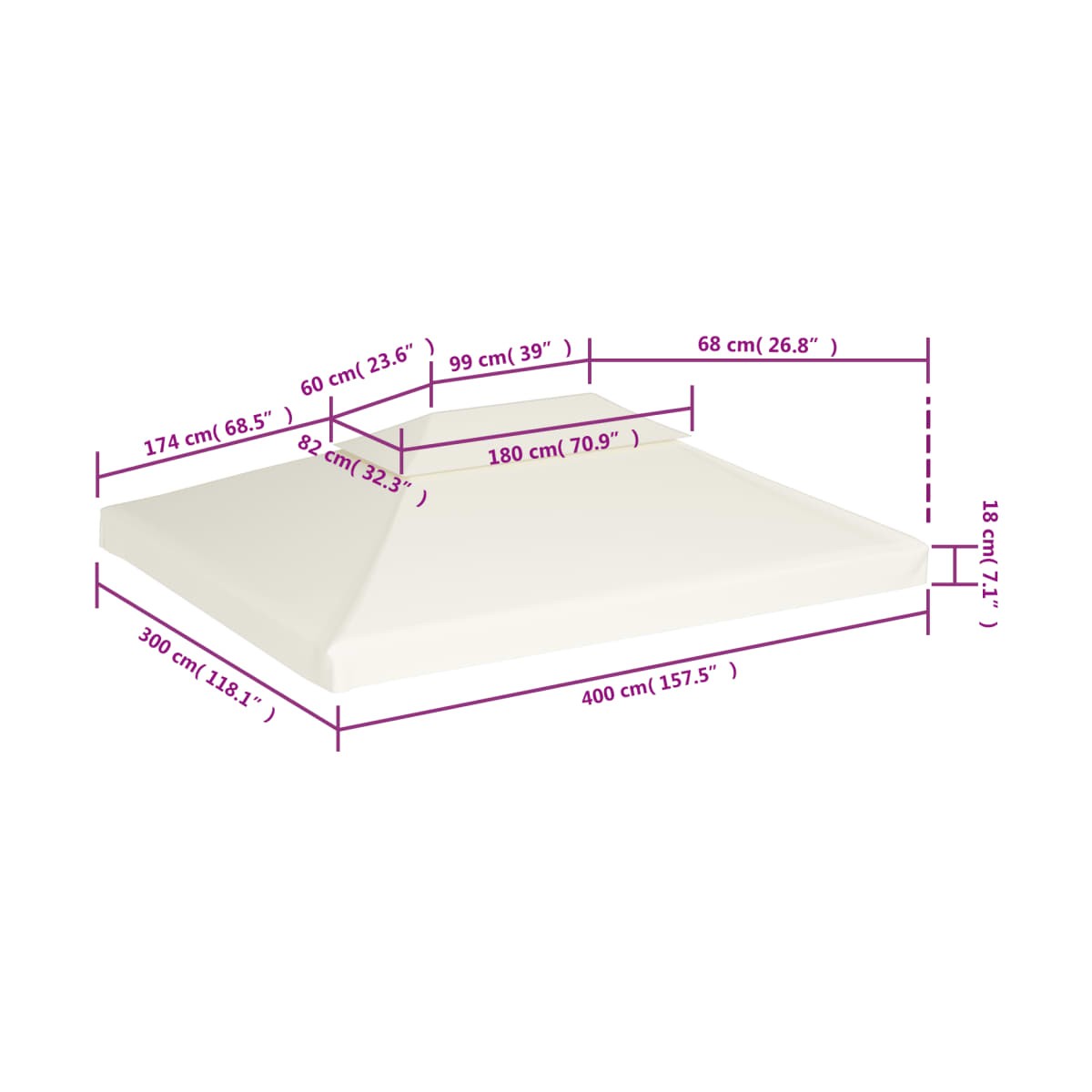 ¡Disfruta del espacio al aire libre de la casa sin quemaduras de sol! Esta cubierta superior de repuesto para el cenador te da una nueva oportunidad para que te relajes y no pases calor. Buena protección: La cubierta para cenador tiene un revestimiento de PVC que la hace resistente al agua. Protege contra el sol abrasador, la lluvia intensa y otras condiciones climáticas adversas. Sin embargo, por tu seguridad, asegúrate de que la cubierta no acumule agua. Diseño práctico: Cada funda tiene 8 anillos de ojal que funcionan como rebosaderos en caso de fuertes lluvias. Dado que están en el costado de la cubierta, no afectarán a la protección contra la lluvia cuando estés sentado debajo.Material duradero: La tela pesa 310 g / m², y con esquinas reforzadas para una mayor durabilidad, este refugio perfecto resistirá una dura prueba durante todo el año para ofrecerte una reunión agradable y alegre con tu familia o amigos. Información útil:Esta es la cubierta superior solamente. La entrega no incluye la estructura del cenador. Se trata de una cubierta superior de reemplazo de alta calidad para las personas que ya tienen una estructura. También ofrecemos 16 piezas de cierre de gancho y bucle para facilitar la instalación y la fijación a la estructura de tu cenador.