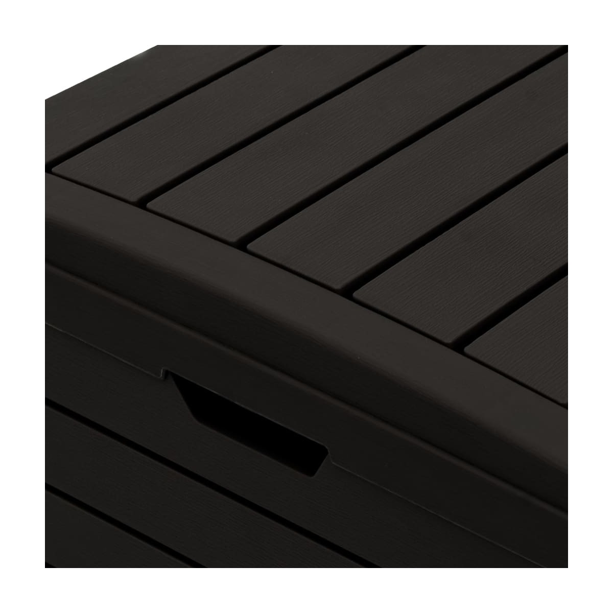 El cubo de basura para exteriores tiene una gran capacidad y un cierre con tapa doble, por lo que es ideal para parques, jardines y otros espacios públicos. Material duradero: El polipropileno (PP) es un plástico popular y también uno de los materiales más utilizados en muebles de exterior. Es ligero, duro y resistente a los impactos. Además, la resistencia a los rayos UV y a la intemperie facilita su limpieza y mantenimiento.Diseño con textura de madera de imitación: El cubo de basura posee un diseño de textura de madera de imitación que agrega un toque de encanto natural al espacio al aire libre de la casa.Cierre con tapa doble: El diseño de doble tapa esconde la bolsa de basura y mantiene el cubo cerrado incluso si vuelca. Asimismo, ayuda a mantener alejados a los bichos molestos y evita que se escapen los malos olores.Amplio espacio: El cubo de basura tiene una gran capacidad de hasta 118 l, para que puedas meter toda tu basura.Bandeja de líquidos extraíble: El cubo posee un bandeja de goteo fácil de quitar que facilita mucho la limpieza del contenedor.