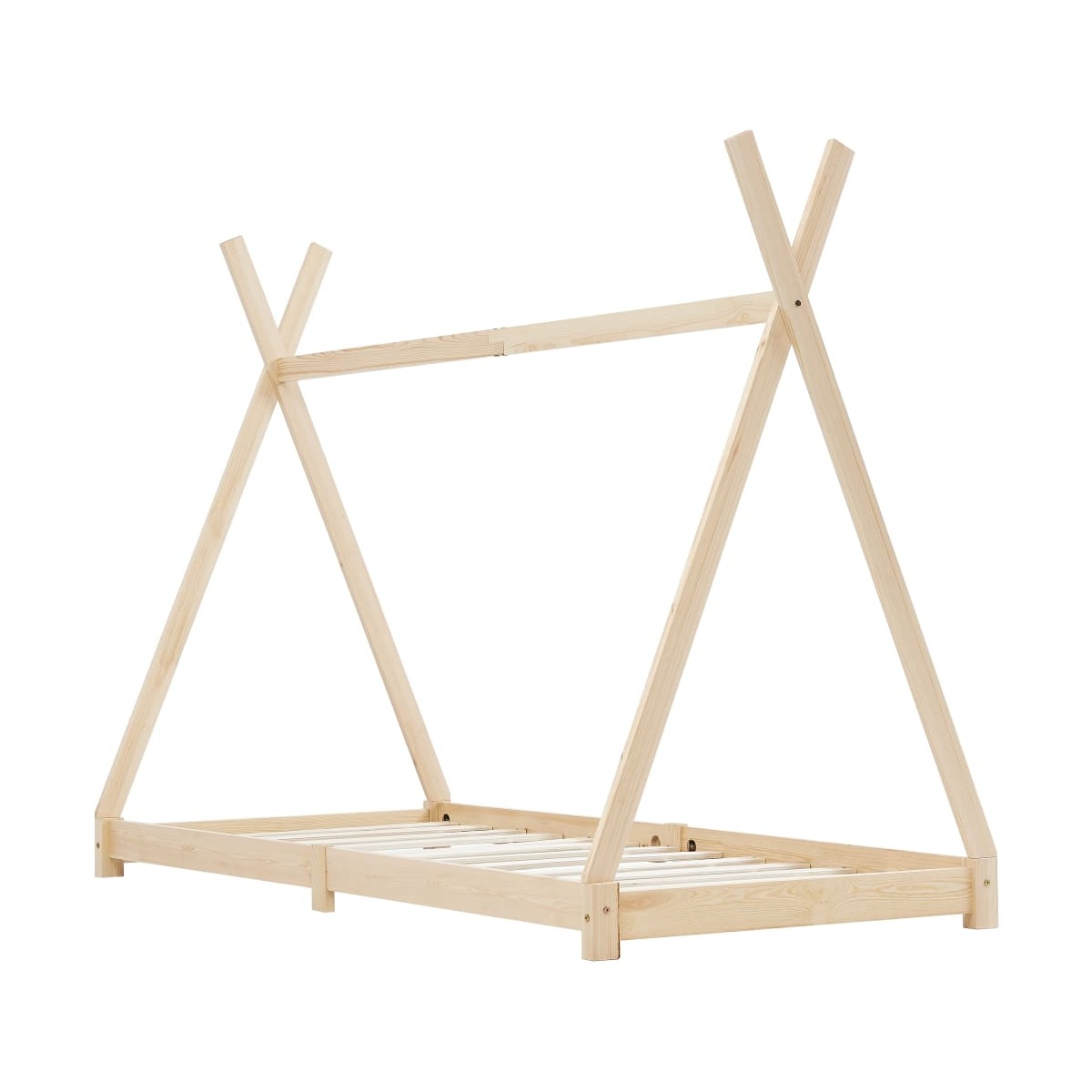 ¡Crea el escondite definitivo en el dormitorio de tus hijos con nuestra fantástica estructura de cama de madera! La cama posee una novedosa estructura cruzada inspirada en las geniales tiendas tipis donde puedes colgar cortinas para que tu hijo tenga intimidad. También puede usarse como un rincón de lectura o una casita de juegos para tu hijo. Hecha de madera maciza de pino, esta estructura de cama es muy robusta y duradera. Los fuertes listones ofrecen el soporte necesario y son muy cómodos. Esta estructura de cama es adecuada para un colchón de 90 x 200 cm. Ten en cuenta que la entrega incluye solo una estructura de cama. El colchón y las cortinas no están incluidos. La cama es fácil de montar. Puedes consultar en nuestra tienda los colchones a juego.