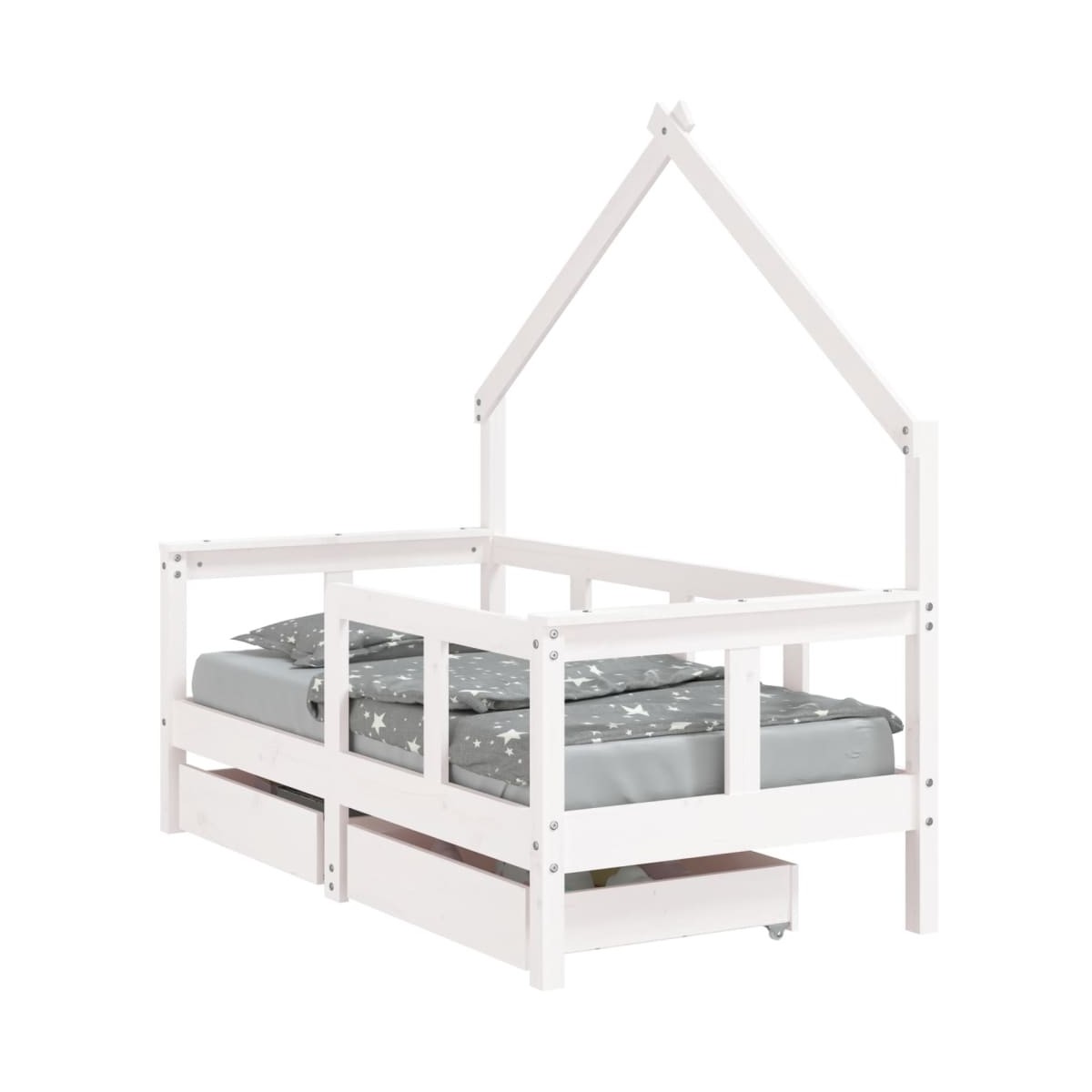 ¡Crea un espacio lleno de diversión para tu pequeño con esta fantástica cama infantil de madera! Madera maciza de pino: La estructura de la cama infantil está fabricada en madera de pino maciza. La madera de pino maciza es un bonito material natural. La madera de pino tiene vetas rectas, y los nudos dan al material su distintivo aspecto rústico.Listones resistentes: La cama para niños tiene listones de madera para un soporte firme, ventilación y estabilidad.Diseño de cama de casita: Esta cama para niños pequeños con un diseño fresco pero sencillo convierte el tiempo de dormir en una experiencia divertida. Ofrece muchas posibilidades para divertirse y construir el pequeño mundo de tu hijo, estimulando la creatividad e imaginación.Cajón de almacenaje: Los cajones de almacenaje incluidos ofrecen un amplio espacio para guardar pequeños juguetes, ropa y ropa de cama, lo que mantiene la habitación ordenada y limpia.Diseño considerado: La altura de la cama individual infantil está diseñada para estar baja hasta el suelo, lo que facilita que tu hijo entre y salga de la cama.