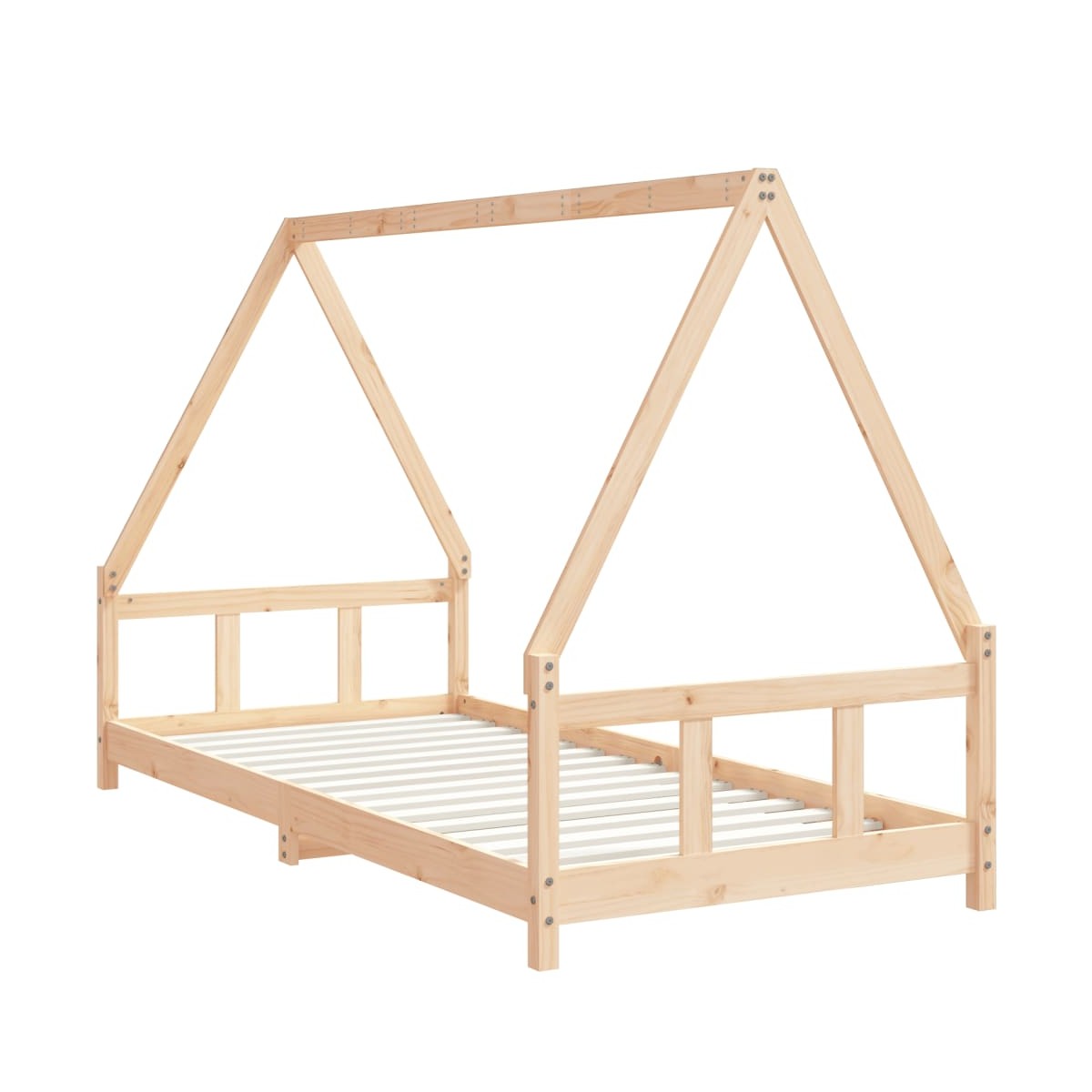 ¡Crea un espacio lleno de diversión para tu pequeño con esta fantástica cama infantil de madera! Madera maciza de pino: La estructura de la cama infantil está fabricada en madera de pino maciza. La madera de pino maciza es un bonito material natural. La madera de pino tiene vetas rectas, y los nudos dan al material su distintivo aspecto rústico.Listones resistentes: La cama para niños tiene listones de madera para un soporte firme, ventilación y estabilidad.Cama con forma de casa: Esta cama infantil está diseñada de forma inteligente, con una estructura co forma de casa, donde puedes colgar cortinas para que tu hijo tenga intimidad.Diseño considerado: La altura de la cama individual infantil está diseñada para estar baja hasta el suelo, lo que facilita que tu hijo entre y salga de la cama.