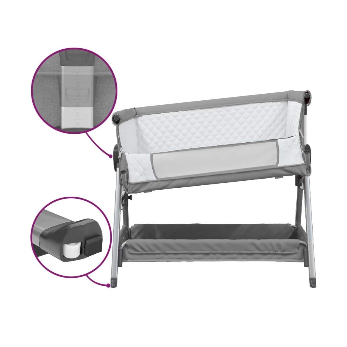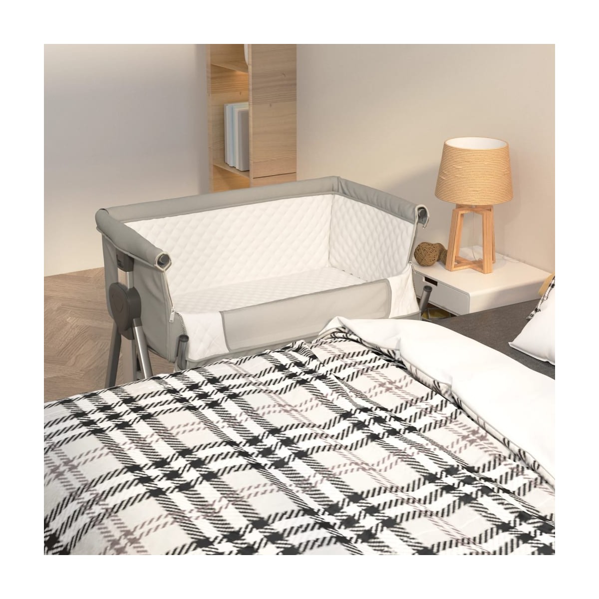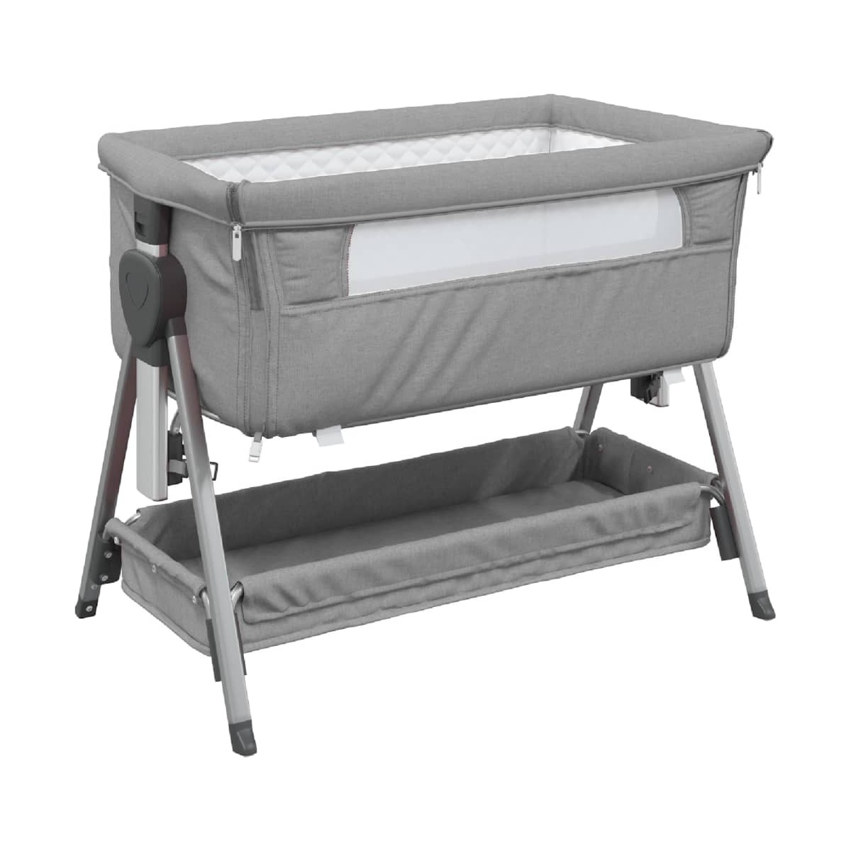 Esta cuna de bebé con colchón se puede utilizar junto a la cama para dar a tu bebé una sensación de seguridad por estar cerca de los padres. Amplios usos: Esta cuna para bebés se puede usar como una cuna independiente donde tu hijo puede dormir de manera segura, o también puedes pegarla a la cama de los padres para cuidar mejor al bebé. Material práctico: La estructura de hierro garantiza su estabilidad. El lino posee un aspecto sencillo y limpio, y es transpirable y duradero. La tela de malla transpirable te permite vigilar al bebé. Alturas regulables: La cuna, con 6 alturas regulables, es ideal para un uso polivalente. Puedes usarla junto a la cama, cerca de sofás, etc. Puedes elegir la altura adecuada según tus necesidades.Espacio de almacenamiento: La canasta de almacenamiento debajo de la cuna facilita mantener las cosas organizadas. Colchón extraíble: El colchón de la cuna de bebés es blando y cómodo. También tiene una cremallera que permite quitarlo y limpiarlo fácilmente. Nota:Deja de usar la cuna tan pronto como el niño sea capaz de sentarse sin ayuda, levantarse solo o esté aprendiendo a gatear levantándose sobre sus manos y rodillas.Por la seguridad del bebé, no utilices este producto sin leer las instrucciones.No la uses junto a camas de agua, camas redondas o infantiles.Cada producto viene con un manual de montaje en la caja para facilitar el montaje.