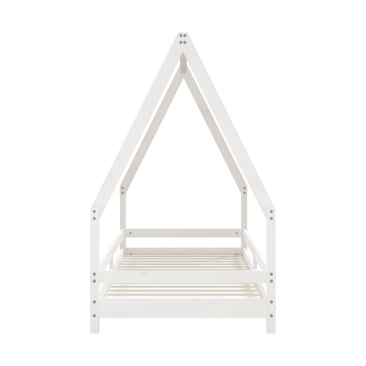 ¡Crea un espacio lleno de diversión para tu pequeño con esta fantástica cama infantil de madera! Madera maciza de pino: La estructura de la cama infantil está fabricada en madera de pino maciza. La madera de pino maciza es un bonito material natural. La madera de pino tiene vetas rectas, y los nudos dan al material su distintivo aspecto rústico.Listones resistentes: La cama para niños tiene listones de madera para un soporte firme, ventilación y estabilidad.Cama con forma de casa: Esta cama infantil está diseñada de forma inteligente, con una estructura co forma de casa, donde puedes colgar cortinas para que tu hijo tenga intimidad.Diseño considerado: La altura de la cama individual infantil está diseñada para estar baja hasta el suelo, lo que facilita que tu hijo entre y salga de la cama.