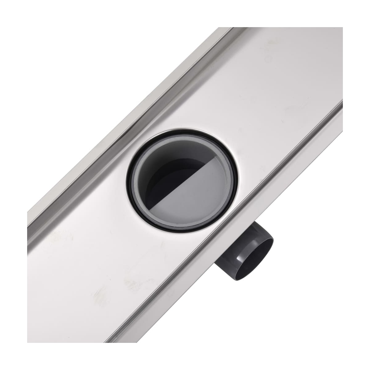 Este completo conjunto consta de 12 canales de drenaje con rejillas de plástico, 1 sistema de filtro, 1 conector de salida inferior y 2 tapas de cierre.