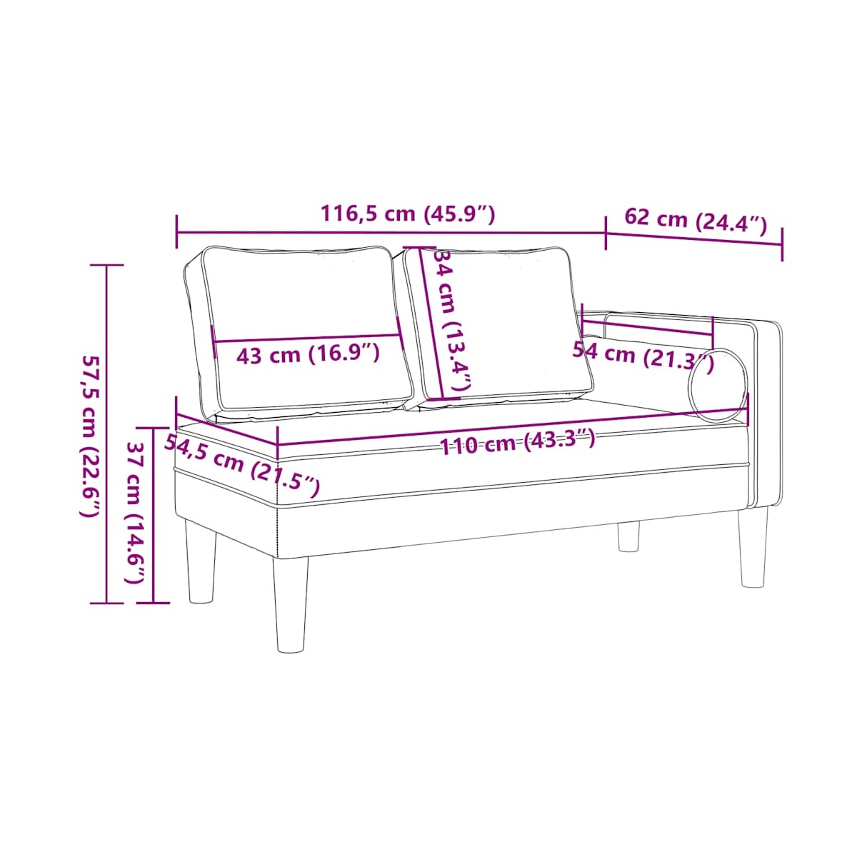 - Dimensiones de asiento: 110 x 54,5 cm (ancho x profundo)