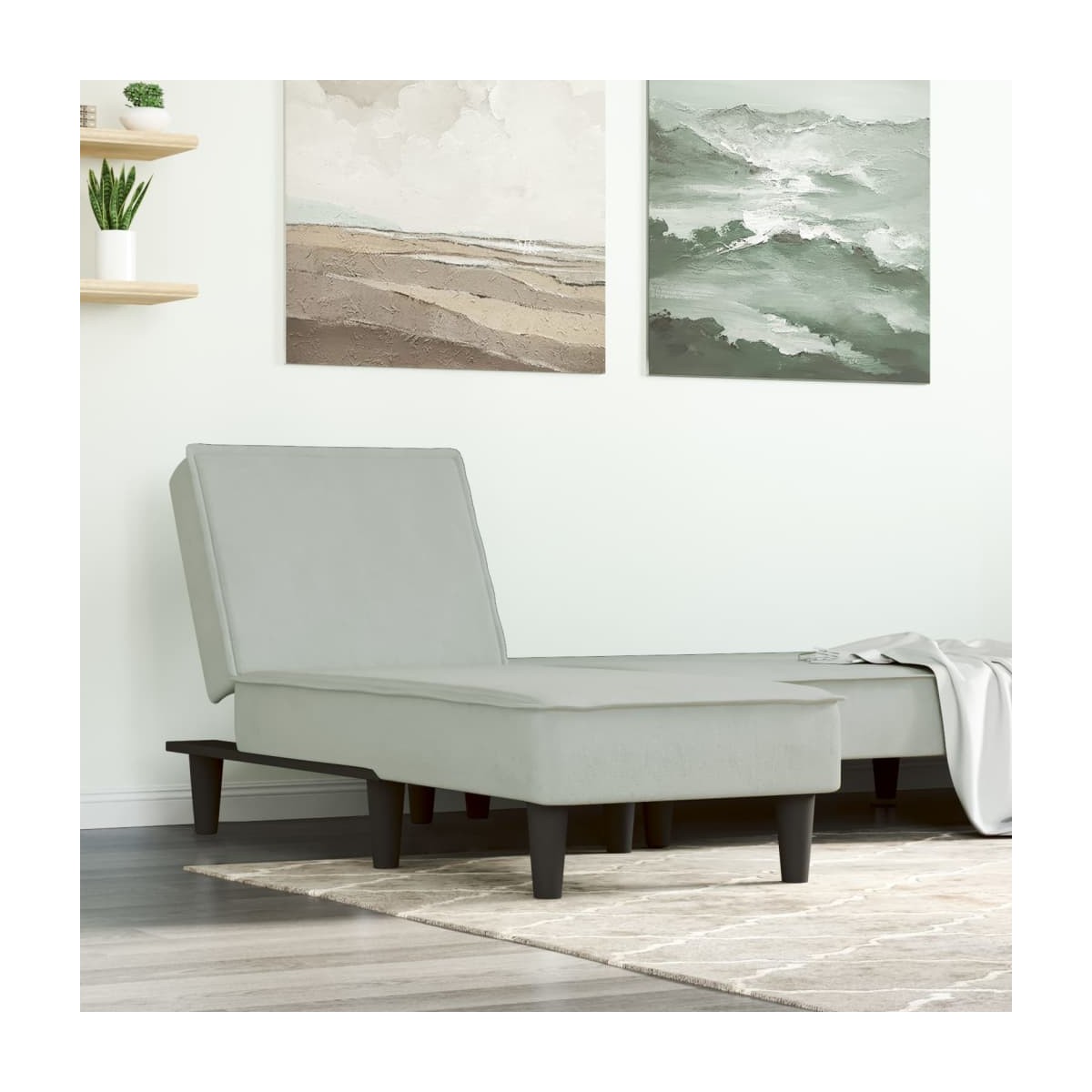 Si quieres crear un rincón de descanso individual en casa, este sofá diván reclinable es una excelente opción. Chaise longue multiusos: El diván es una buena elección para espacios limitados. Tiene 3 posiciones convertibles para sentarte, descansar y dormir, por lo que puede ser un sofá diván cómodo y reclinable para usar a diario o una cama temporal para invitados.Asiento cómodo: El terciopelo es un tejido suave y cómodo, agradable al tacto. Con una tapicería de terciopelo que envuelve espuma de alta densidad, este diván proporciona un lugar cómodo y acogedor para sentarte y dormir.Estructura robusta y estable: La estructura de madera contrachapada del diván ajustable garantiza su solidez y estabilidad.Aspecto elegante: Refinado con líneas elegantes y una estructura precisa, el diván es un complemento acogedor y contemporáneo para el salón.