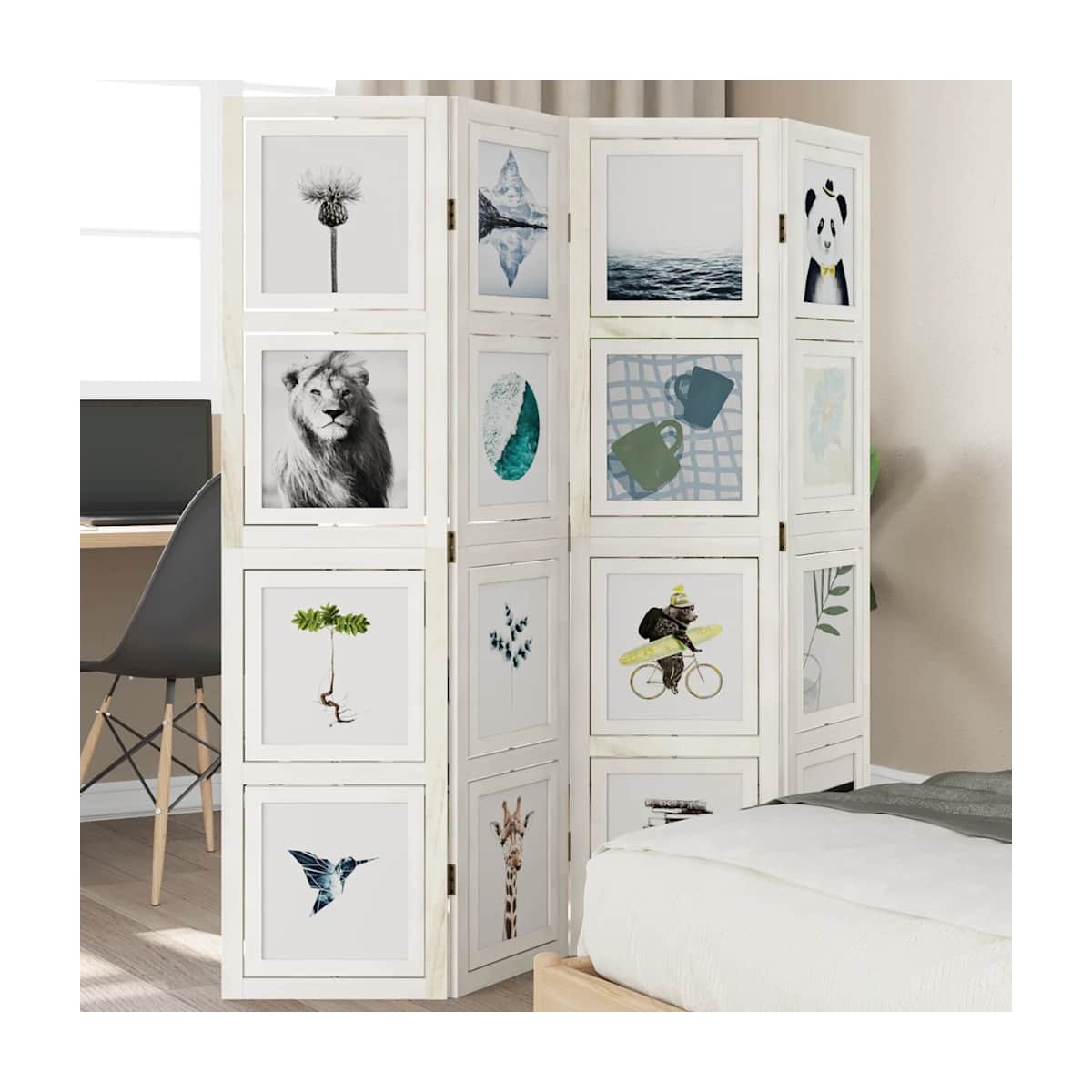 Aporta elegancia y un toque decorativo llamativo a tu espacio con este encantador biombo separador de ambientes. Duradero y fácil de limpiar: La pantalla de privacidad está hecha de madera maciza de paulownia, lo que la hace fácil de limpiar y duradera. La estructura de madera maciza de paulownia garantiza robustez y estabilidad. La madera maciza de paulownia es un bonito material natural. La madera de Paulownia es muy resistente a los bichos y a la putrefacción.Flexible y fácil de plegar: Cada tabique está conectado por 3 bisagras metálicas y los paneles superior e inferior están conectados por bisagras ocultas 2 en 1. Por lo tanto, el panel divisor de ambientes se puede plegar fácilmente hasta cierto punto según sus necesidades para ahorrar espacio.Diseño atractivo: Cada marco de fotos se puede girar verticalmente, lo que permite organizar tus fotos favoritas en cualquier posición, convirtiéndose en el foco de atención de la habitación.Multiusos: La partición de la habitación es ideal para crear un espacio privado en su dormitorio, sala de estar, oficina y otros interiores. También puedes colocarlo frente a una ventana para bloquear la luz solar intensa. Advertencia:Solo para uso en interiores.