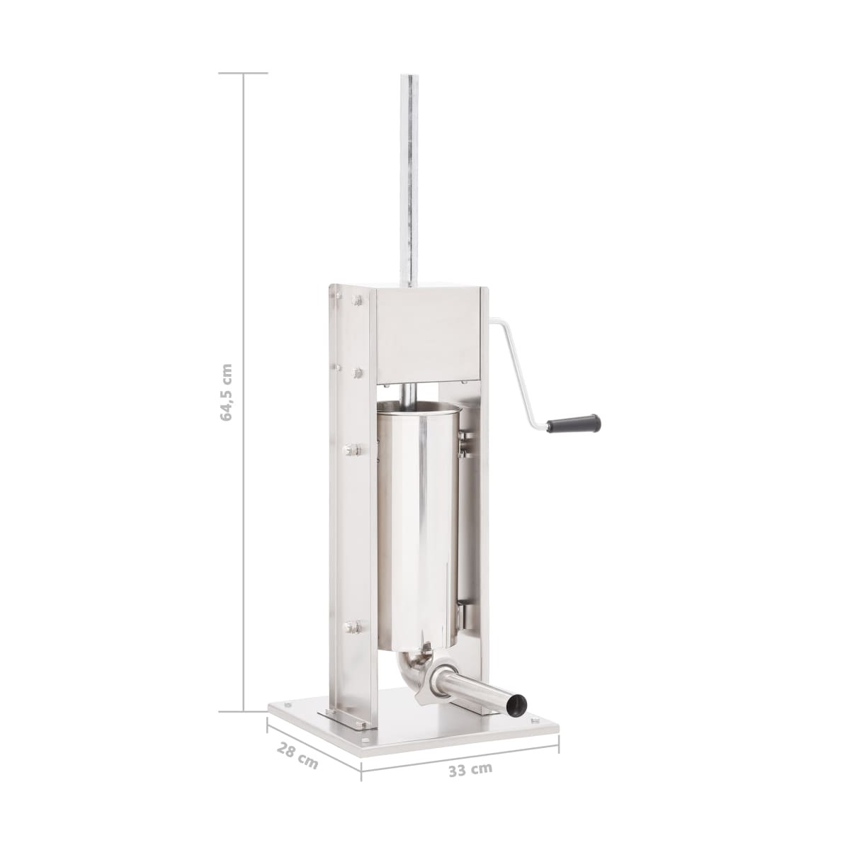 Con nuestro embutidor de salchichas y chorizos fácil de usar, puedes hacer salchichas, salchichones o chorizos manualmente de una manera rápida y práctica. Es perfecto tanto para uso doméstico como profesional. La máquina para hacer chorizos de acero inoxidable está equipada con una tolva de 5 litros que es inclinable y extraíble para llenar cómodamente la carne y limpiarla fácilmente. Con la manivela manual, se acciona el pistón, que presiona la masa de salchicha o chorizo a través del tubo llenado. Además, se incluyen 3 tubos de llenado de diferentes tamaños en la entrega para satisfacer diferentes necesidades.