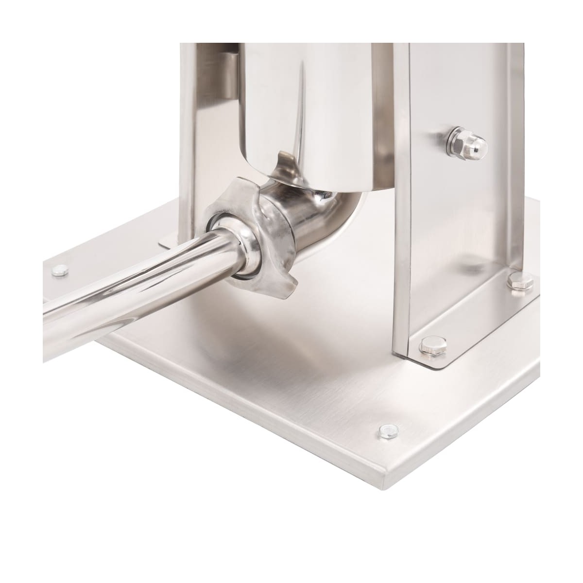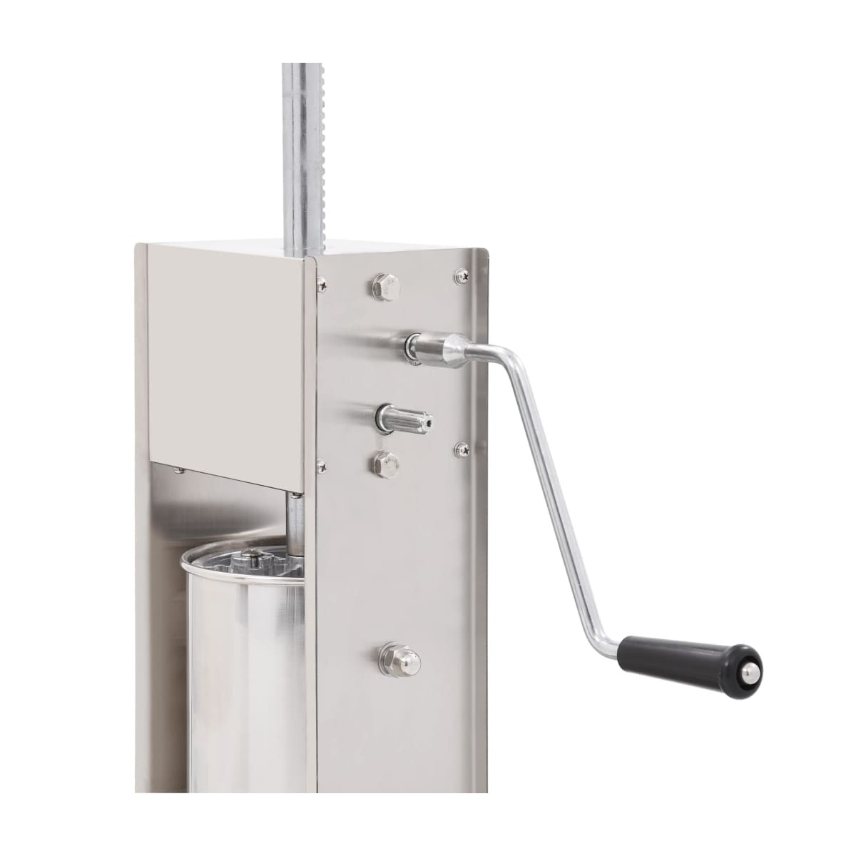 Con nuestra embutidora de salchichas/chorizos fácil de usar, puedes hacer salchichas o chorizos manualmente de una manera rápida y práctica. Es perfecta tanto para uso doméstico como profesional. La máquina para hacer chorizos de acero inoxidable está equipada con una tolva de 7 litros que es inclinable y extraíble para llenar cómodamente la carne y limpiarla fácilmente. Con la manivela manual, se acciona el pistón, que presiona la masa de salchicha o chorizo a través del tubo llenado. Además, se incluyen 3 tubos de llenado de diferentes tamaños en la entrega para satisfacer diferentes necesidades.