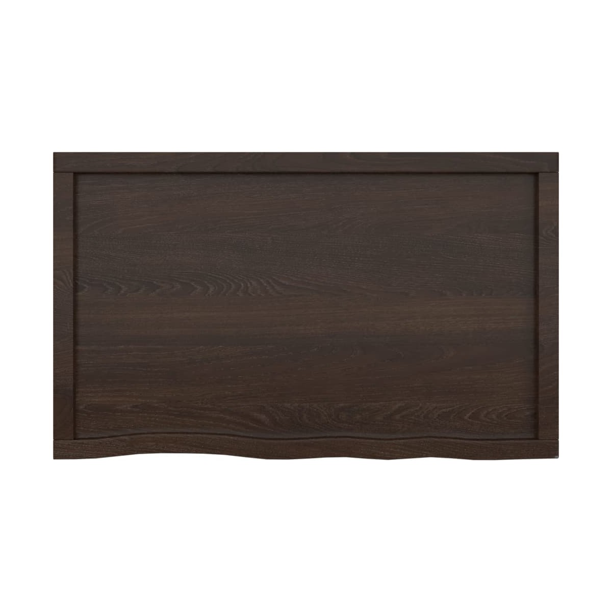 ¿Estás pensando en renovar las encimeras de la casa? ¡Esta encimera de baño de madera es una elección perfecta! Construcción duradera: Esta encimera de baño está hecha de madera maciza de roble, un bonito material natural. La madera de roble tiene un color marrón medio y unas vetas densas, que refuerzan su aspecto único.Aplicaciones versátiles: Además de una encimera de tocador de baño, esta encimera de madera se puede combinar con diferentes bases según tus necesidades. Puede utilizarse como estantería, encimera de armario, encimera de escritorio, tablero de mesa, etc.Superficie tratada: La encimera del baño se ha tratado con pintura oscura, por lo que está listo para usar, ya que no necesita un acabado adicional.Hecho a mano con borde natural: Esta encimera de baño está hecha a mano con un borde natural. Debido a que los nudos, grietas, formas ligeramente curvadas y tonos de color son parte de la madera de roble, cada pieza de encimera de roble tiene su propio carácter único. La entrega es aleatoria. Información útil:Al ser un producto natural, la madera puede presentar nudos e imperfecciones que rellenamos con rellenos para garantizar un aspecto liso.