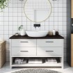 ¿Estás pensando en renovar las encimeras de la casa? ¡Esta encimera de baño de madera es una elección perfecta! Construcción duradera: Esta encimera de baño está hecha de madera maciza de roble, un bonito material natural. La madera de roble tiene un color marrón medio y unas vetas densas, que refuerzan su aspecto único.Aplicaciones versátiles: Además de una encimera de tocador de baño, esta encimera de madera se puede combinar con diferentes bases según tus necesidades. Puede utilizarse como estantería, encimera de armario, encimera de escritorio, tablero de mesa, etc.Superficie tratada: La encimera del baño se ha tratado con pintura oscura, por lo que está listo para usar, ya que no necesita un acabado adicional.Hecho a mano con borde natural: Esta encimera de baño está hecha a mano con un borde natural. Debido a que los nudos, grietas, formas ligeramente curvadas y tonos de color son parte de la madera de roble, cada pieza de encimera de roble tiene su propio carácter único. La entrega es aleatoria. Información útil:Al ser un producto natural, la madera puede presentar nudos e imperfecciones que rellenamos con rellenos para garantizar un aspecto liso.