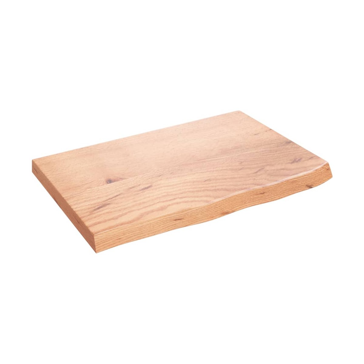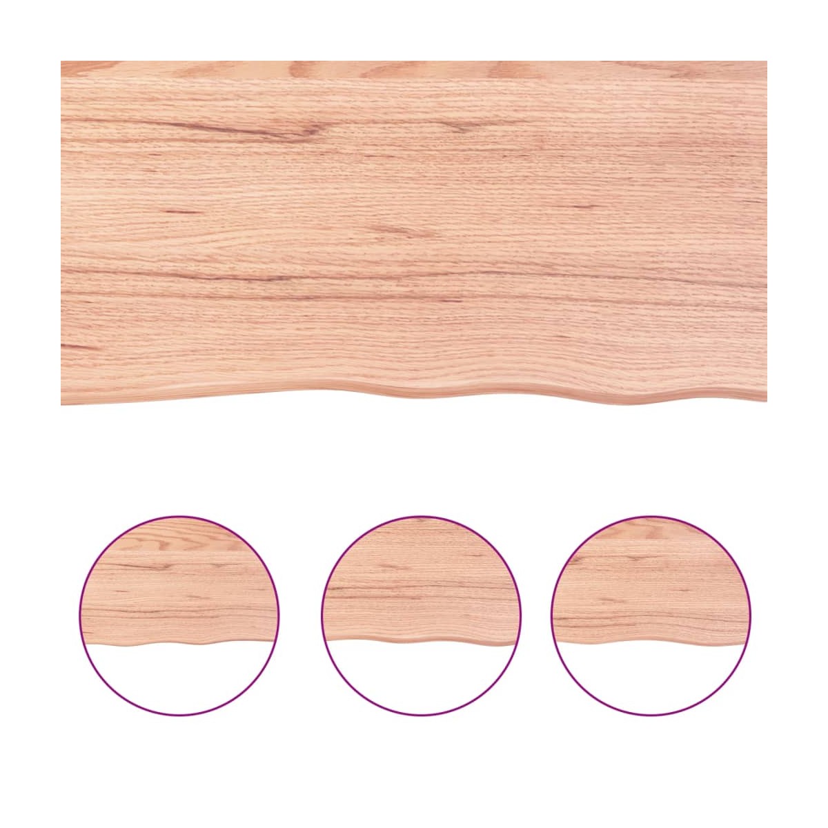 ¿Estás pensando en renovar las encimeras de la casa? ¡Esta encimera de baño de madera es una elección perfecta! Construcción duradera: Esta encimera de baño está hecha de madera maciza de roble, un bonito material natural. La madera de roble tiene un color marrón medio y unas vetas densas, que refuerzan su aspecto único.Aplicaciones versátiles: Además de una encimera de tocador de baño, esta encimera de madera se puede combinar con diferentes bases según tus necesidades. Puede utilizarse como estantería, encimera de armario, encimera de escritorio, tablero de mesa, etc.Superficie tratada: La encimera de baño está lista para usar, ya que ha sido barnizada y no necesita ningún acabado adicional.Hecho a mano con borde natural: Esta encimera de baño está hecha a mano con un borde natural. Debido a que los nudos, grietas, formas ligeramente curvadas y tonos de color son parte de la madera de roble, cada pieza de encimera de roble tiene su propio carácter único. La entrega es aleatoria. Información útil:Al ser un producto natural, la madera puede presentar nudos e imperfecciones que rellenamos con rellenos para garantizar un aspecto liso.