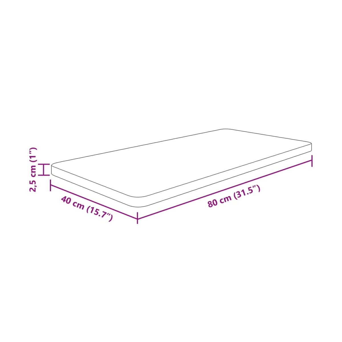 - Dimensiones: 80 x 40 x 2,5 cm (largo x ancho x grosor)