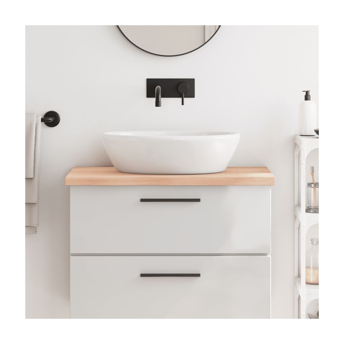 ¿Estás pensando en renovar las encimeras de la casa? ¡Esta encimera de baño de madera es una elección perfecta! Construcción duradera: Esta encimera de baño está hecha de madera maciza de roble, un bonito material natural. La madera de roble tiene un color marrón medio y unas vetas densas, que refuerzan su aspecto único.Aplicaciones versátiles: Además de una encimera de tocador de baño, esta encimera de madera se puede combinar con diferentes bases según tus necesidades. Puede utilizarse como estantería, encimera de armario, encimera de escritorio, tablero de mesa, etc.Superficie sin tratar: Como la encimera de baño está hecha de madera maciza de roble sin acabado, puedes mantener el color natural, pero también puedes pintarlo o lacarlo dependiendo de lo que prefieras.Hecho a mano con borde natural: Esta encimera de baño está hecha a mano con un borde natural. Debido a que los nudos, grietas, formas ligeramente curvadas y tonos de color son parte de la madera de roble, cada pieza de encimera de roble tiene su propio carácter único. La entrega es aleatoria. Información útil:Al ser un producto natural, la madera puede presentar nudos e imperfecciones que rellenamos con rellenos para garantizar un aspecto liso.
