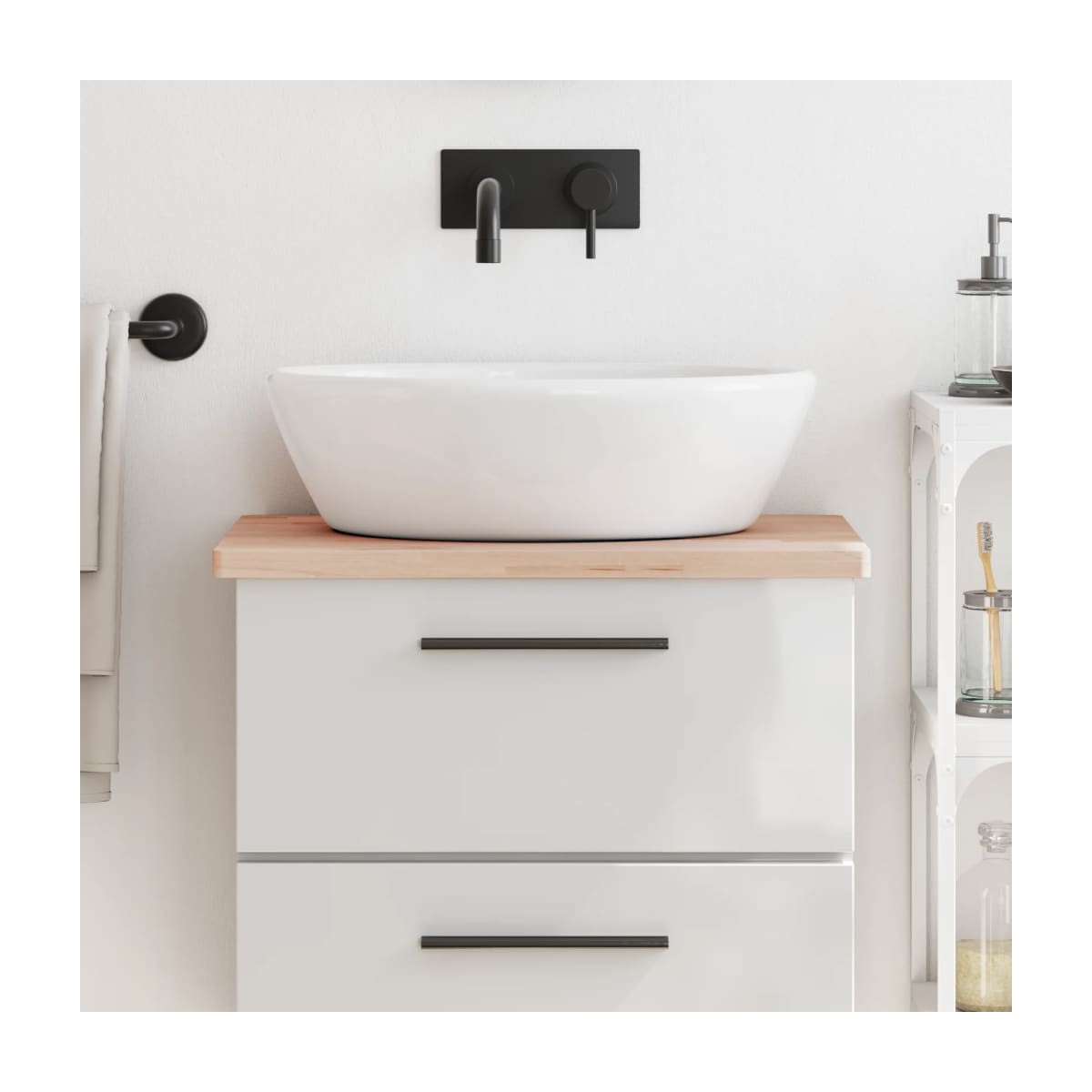 ¿Estás pensando en renovar las encimeras de la casa? ¡Esta encimera de baño de madera es una elección perfecta! Construcción duradera: Esta encimera de baño está hecha de madera maciza de haya, que es un bonito material natural. La madera de haya tiene vetas rectas y es muy duradera.Diversos usos: Esta encimera de madera se puede utilizar como encimera de tocador de baño, estante, encimera de armario y mucho más. También puedes combinarla con patas de cualquier estilo para adaptarla a tus necesidades.Esquinas redondeadas: Las 4 esquinas redondeadas de la encimera del baño pueden reducir eficazmente la posibilidad de una choque, protegiendo la seguridad de tus hijos y tu familia.Superficie fácil de limpiar: La encimera lisa es fácil de limpiar con un paño húmedo. Información útil:Cada artículo es único, con variaciones de color y veta. La entrega es aleatoria garantizando la exclusividad y la individualidad del producto.