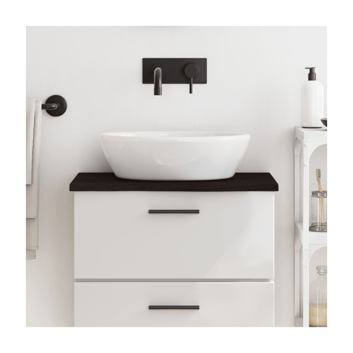¿Estás pensando en renovar las encimeras de la casa? ¡Esta encimera de baño de madera es una elección perfecta! Construcción duradera: Esta encimera de baño está hecha de madera maciza de roble, un bonito material natural. La madera de roble tiene un color marrón medio y unas vetas densas, que refuerzan su aspecto único.Aplicaciones versátiles: Además de una encimera de tocador de baño, esta encimera de madera se puede combinar con diferentes bases según tus necesidades. Puede utilizarse como estantería, encimera de armario, encimera de escritorio, tablero de mesa, etc.Superficie tratada: La encimera del baño se ha tratado con pintura oscura, por lo que está listo para usar, ya que no necesita un acabado adicional.Hecho a mano con borde natural: Esta encimera de baño está hecha a mano con un borde natural. Debido a que los nudos, grietas, formas ligeramente curvadas y tonos de color son parte de la madera de roble, cada pieza de encimera de roble tiene su propio carácter único. La entrega es aleatoria.