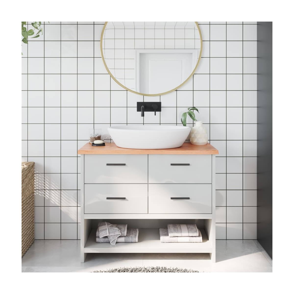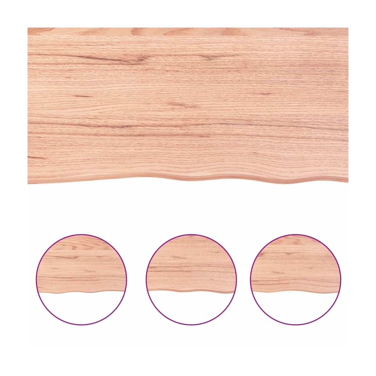 ¿Estás pensando en renovar las encimeras de la casa? ¡Esta encimera de baño de madera es una elección perfecta! Construcción duradera: Esta encimera de baño está hecha de madera maciza de roble, un bonito material natural. La madera de roble tiene un color marrón medio y unas vetas densas, que refuerzan su aspecto único.Aplicaciones versátiles: Además de una encimera de tocador de baño, esta encimera de madera se puede combinar con diferentes bases según tus necesidades. Puede utilizarse como estantería, encimera de armario, encimera de escritorio, tablero de mesa, etc.Superficie tratada: La encimera de baño está lista para usar, ya que ha sido barnizada y no necesita ningún acabado adicional.Hecho a mano con borde natural: Esta encimera de baño está hecha a mano con un borde natural. Debido a que los nudos, grietas, formas ligeramente curvadas y tonos de color son parte de la madera de roble, cada pieza de encimera de roble tiene su propio carácter único. La entrega es aleatoria. Información útil:Al ser un producto natural, la madera puede presentar nudos e imperfecciones que rellenamos con rellenos para garantizar un aspecto liso.