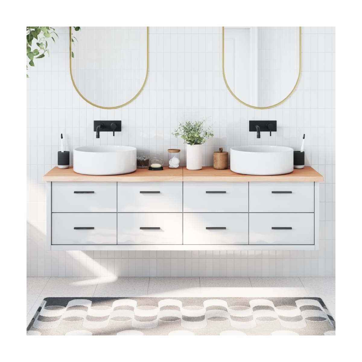 ¿Estás pensando en renovar las encimeras de la casa? ¡Esta encimera de baño de madera es una elección perfecta! Construcción duradera: Esta encimera de baño es de madera maciza de roble, un hermoso material natural. La madera de roble tiene un color marrón medio y unas vetas densas, que refuerzan su aspecto único. Gracias al diseño con bisagras, se puede plegar y guardar en espacios estrechos.Aplicaciones versátiles: Además de una encimera de tocador de baño, esta encimera de madera se puede combinar con diferentes bases según tus necesidades. Puede utilizarse como estantería, encimera de armario, encimera de escritorio, tablero de mesa, etc.Superficie sin tratar: Como la encimera de baño está hecha de madera maciza de roble sin acabado, puedes mantener el color natural, pero también puedes pintarlo o lacarlo dependiendo de lo que prefieras.Hecho a mano con borde natural: Esta encimera de baño está hecha a mano con un borde natural. Debido a que los nudos, grietas, formas ligeramente curvadas y tonos de color son parte de la madera de roble, cada pieza de encimera de roble tiene su propio carácter único. La entrega es aleatoria.