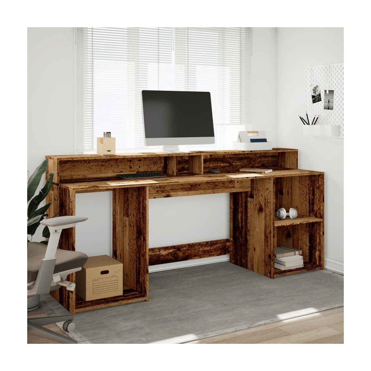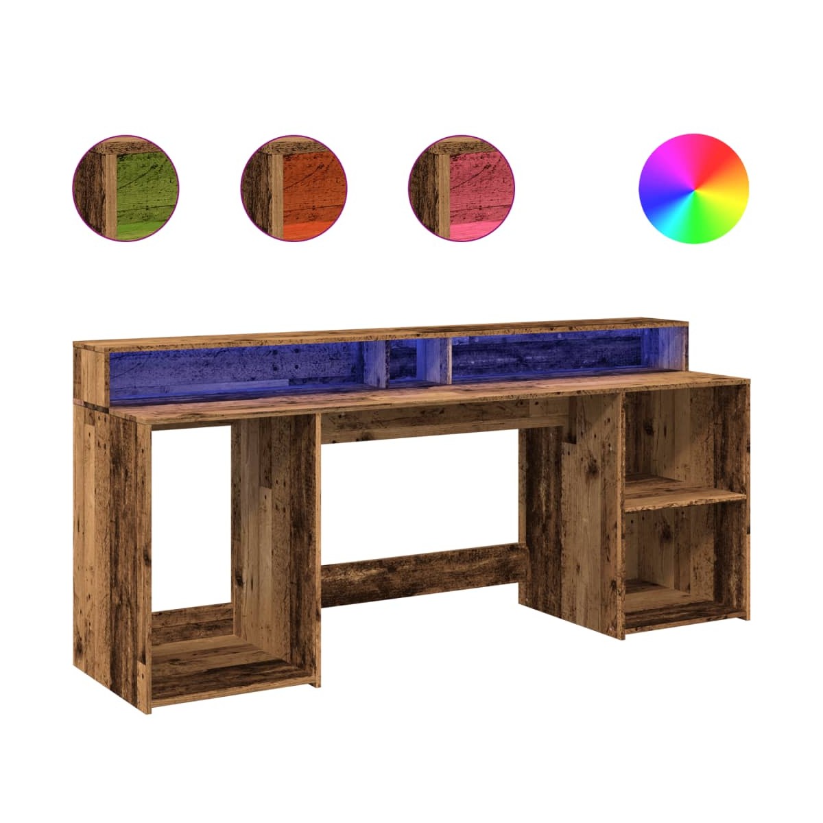 Con un amplio espacio de almacenamiento, una construcción duradera y opciones de iluminación LED, este escritorio es perfecto para crear un espacio de trabajo o de juego organizado y elegante. Material estable y duradero: La madera de ingeniería es un material duradero y estable con una superficie lisa que es resistente a la humedad, la deformación y la rotura, lo que la convierte en una opción fiable para varios proyectos.Luces LED RGB para un ambiente agradable: Este escritorio cuenta con luces LED que se pueden ajustar fácilmente para crear un espectáculo de luces personalizado. Puedes personalizar los modos, los colores y el brillo para mejorar el ambiente de tu espacio interior.Amplio espacio de almacenamiento: El escritorio incluye compartimentos y estantes abiertos, lo que ofrece amplias opciones de almacenamiento para todos los elementos esenciales de su oficina y ayuda a mantener tu espacio de trabajo organizado y ordenado.Fácil mantenimiento: Gracias a su superficie lisa, el escritorio con LED es fácil de limpiar con un paño seco y suave y requiere menos mantenimiento. Desconecta el producto de la fuente de alimentación o apaga la fuente de alimentación cuando la limpies y cuando no esté en uso. Advertencia:Para evitar que vuelque, este producto debe usarse con el dispositivo de fijación a la pared suministrado. Información útil:El producto tiene un conector USB que necesita una fuente de alimentación USB certificada de 5 V (no incluida).