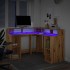 Con un amplio espacio de almacenamiento, una construcción duradera y opciones de iluminación LED, este escritorio es perfecto para crear un espacio de trabajo o de juego organizado y elegante. Material estable y duradero: La madera de ingeniería es un material duradero y estable con una superficie lisa que es resistente a la humedad, la deformación y la rotura, lo que la convierte en una opción fiable para varios proyectos.Luces LED RGB para un ambiente agradable: Este escritorio cuenta con luces LED que se pueden ajustar fácilmente para crear un espectáculo de luces personalizado. Puedes personalizar los modos, los colores y el brillo para mejorar el ambiente de tu espacio interior.Amplio espacio de almacenamiento: El escritorio incluye compartimentos y estantes abiertos, lo que ofrece amplias opciones de almacenamiento para todos los elementos esenciales de su oficina y ayuda a mantener tu espacio de trabajo organizado y ordenado.Compacto y ahorra espacio: Su exclusivo diseño en forma de L ofrece un tamaño compacto, lo que lo hace ideal para encajar en las esquinas.Fácil mantenimiento: Gracias a su superficie lisa, el escritorio con LED es fácil de limpiar con un paño seco y suave y requiere menos mantenimiento. Desconecta el producto de la fuente de alimentación o apaga la fuente de alimentación cuando la limpies y cuando no esté en uso. Advertencia:Para evitar que vuelque, este producto debe usarse con el dispositivo de fijación a la pared suministrado. Información útil:Los tornillos y los tacos para el interior de la pared no están incluidos. Te recomendamos buscar y utilizar tornillos y tacos adecuados específicamente para tus paredes. Si no estás seguro, puedes consultar con un profesional. Lee y sigue cada paso de las instrucciones.El producto tiene un conector USB que necesita una fuente de alimentación USB certificada de 5 V (no incluida).