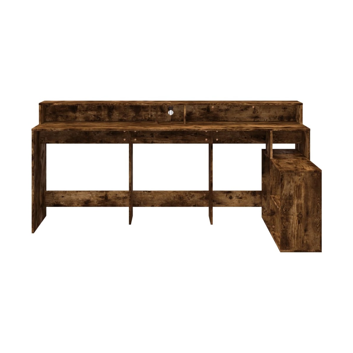 Con un amplio espacio de almacenamiento, una construcción duradera y opciones de iluminación LED, este escritorio es perfecto para crear un espacio de trabajo o de juego organizado y elegante. Material estable y duradero: La madera de ingeniería es un material duradero y estable con una superficie lisa que es resistente a la humedad, la deformación y la rotura, lo que la convierte en una opción fiable para varios proyectos.Luces LED RGB para un ambiente agradable: Este escritorio cuenta con luces LED que se pueden ajustar fácilmente para crear un espectáculo de luces personalizado. Puedes personalizar los modos, los colores y el brillo para mejorar el ambiente de tu espacio interior.Amplio espacio de almacenamiento: El escritorio incluye compartimentos y estantes abiertos, lo que ofrece amplias opciones de almacenamiento para todos los elementos esenciales de su oficina y ayuda a mantener tu espacio de trabajo organizado y ordenado. Además, el escritorio LED cuenta con un orificio especial para la administración de cables, lo que garantiza que tu escritorio se mantenga ordenado.Fácil mantenimiento: Gracias a su superficie lisa, el escritorio con LED es fácil de limpiar con un paño seco y suave y requiere menos mantenimiento. Desconecta el producto de la fuente de alimentación o apaga la fuente de alimentación cuando no esté en uso y cuando la limpies. Advertencia:Para evitar que vuelque, este producto debe usarse con el dispositivo de fijación a la pared suministrado. Información útil:Los tornillos y los tacos para el interior de la pared no están incluidos. Te recomendamos buscar y utilizar tornillos y tacos adecuados específicamente para tus paredes. Si no estás seguro, puedes consultar con un profesional. Lee y sigue cada paso de las instrucciones.El producto tiene un conector USB que necesita una fuente de alimentación USB certificada de 5 V (no incluida).