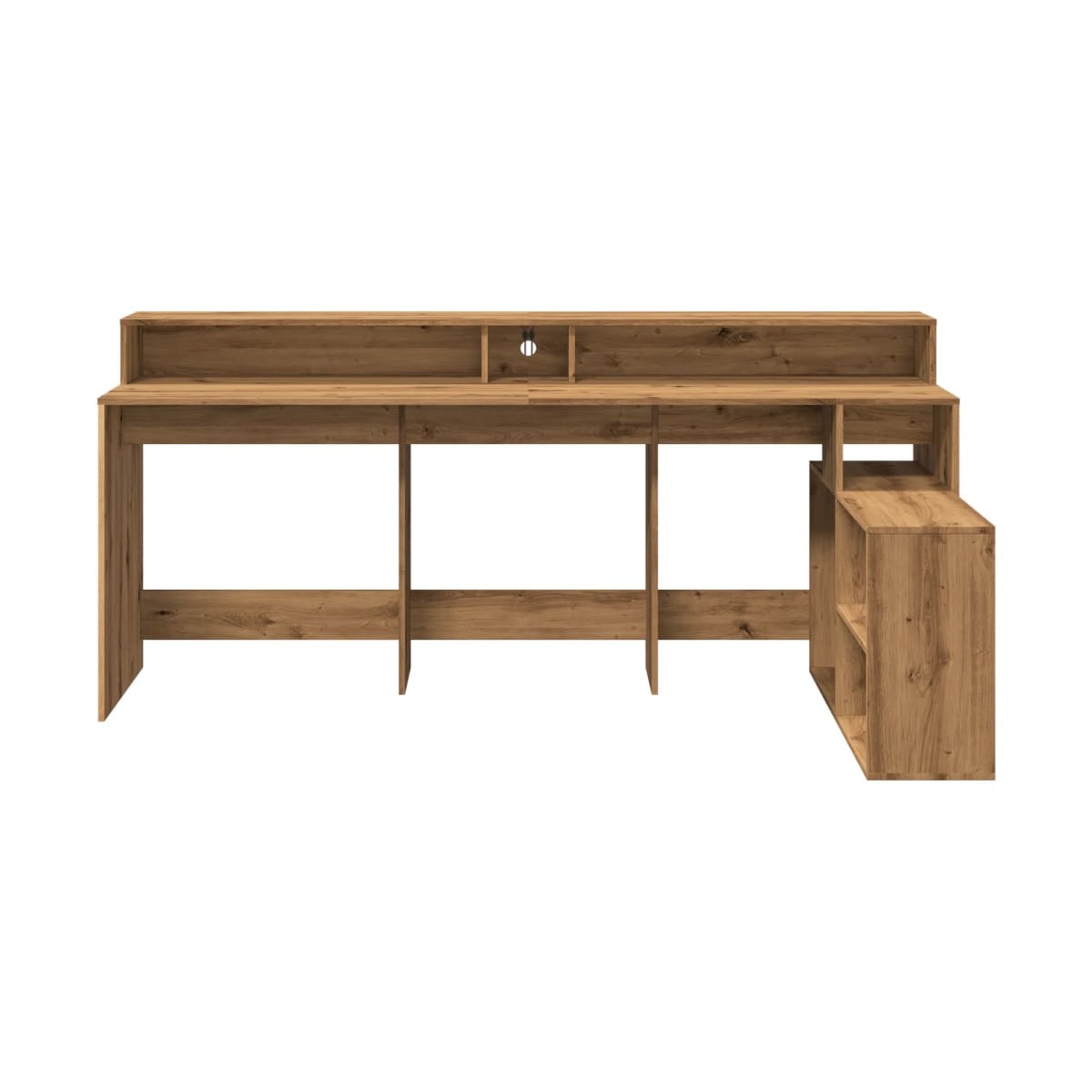 Con un amplio espacio de almacenamiento, una construcción duradera y opciones de iluminación LED, este escritorio es perfecto para crear un espacio de trabajo o de juego organizado y elegante. Material estable y duradero: La madera de ingeniería es un material duradero y estable con una superficie lisa que es resistente a la humedad, la deformación y la rotura, lo que la convierte en una opción fiable para varios proyectos.Luces LED RGB para un ambiente agradable: Este escritorio cuenta con luces LED que se pueden ajustar fácilmente para crear un espectáculo de luces personalizado. Puedes personalizar los modos, los colores y el brillo para mejorar el ambiente de tu espacio interior.Amplio espacio de almacenamiento: El escritorio incluye compartimentos y estantes abiertos, lo que ofrece amplias opciones de almacenamiento para todos los elementos esenciales de su oficina y ayuda a mantener tu espacio de trabajo organizado y ordenado. Además, el escritorio LED cuenta con un orificio especial para la administración de cables, lo que garantiza que tu escritorio se mantenga ordenado.Fácil mantenimiento: Gracias a su superficie lisa, el escritorio con LED es fácil de limpiar con un paño seco y suave y requiere menos mantenimiento. Desconecta el producto de la fuente de alimentación o apaga la fuente de alimentación cuando no esté en uso y cuando la limpies. Advertencia:Para evitar que vuelque, este producto debe usarse con el dispositivo de fijación a la pared suministrado. Información útil:Los tornillos y los tacos para el interior de la pared no están incluidos. Te recomendamos buscar y utilizar tornillos y tacos adecuados específicamente para tus paredes. Si no estás seguro, puedes consultar con un profesional. Lee y sigue cada paso de las instrucciones.El producto tiene un conector USB que necesita una fuente de alimentación USB certificada de 5 V (no incluida).