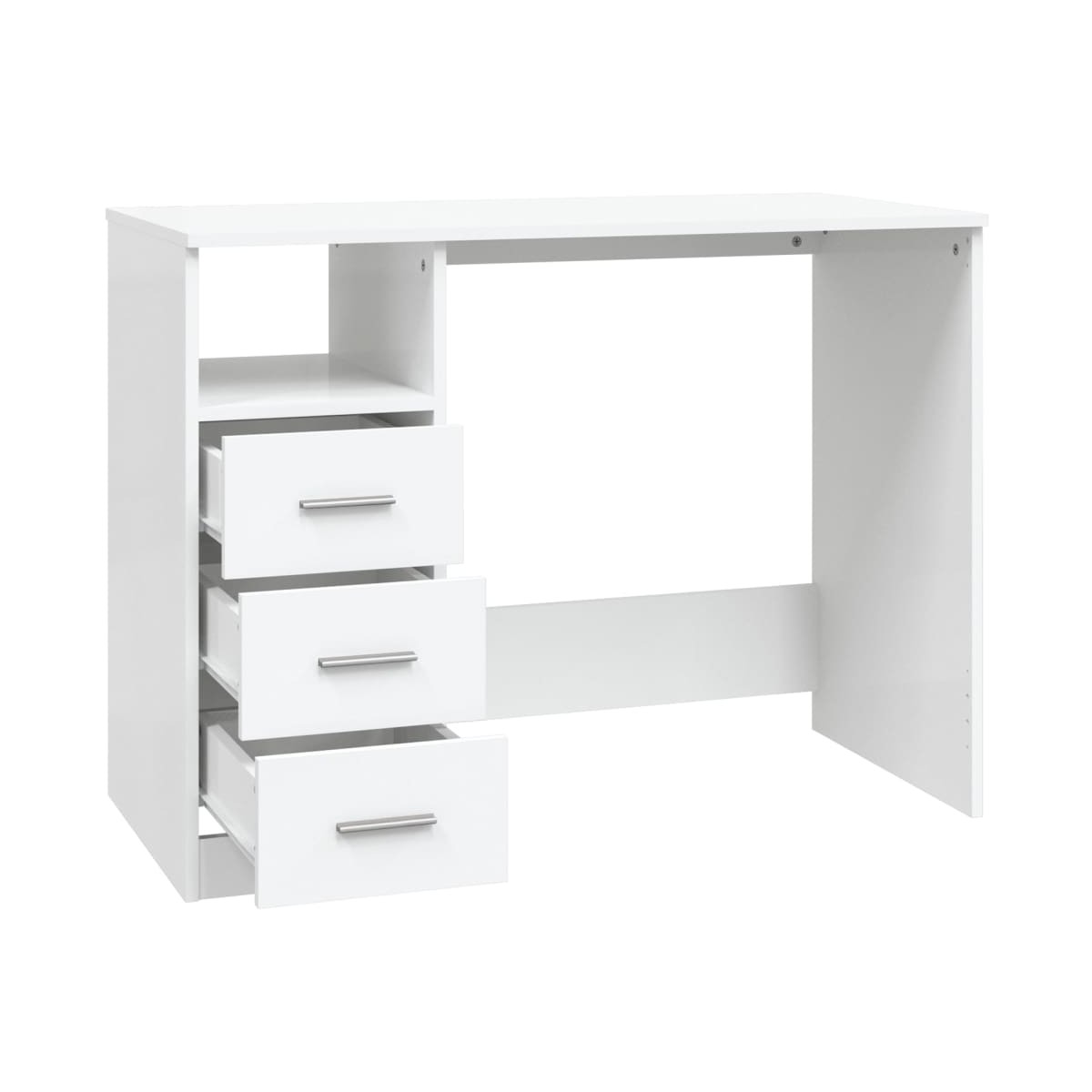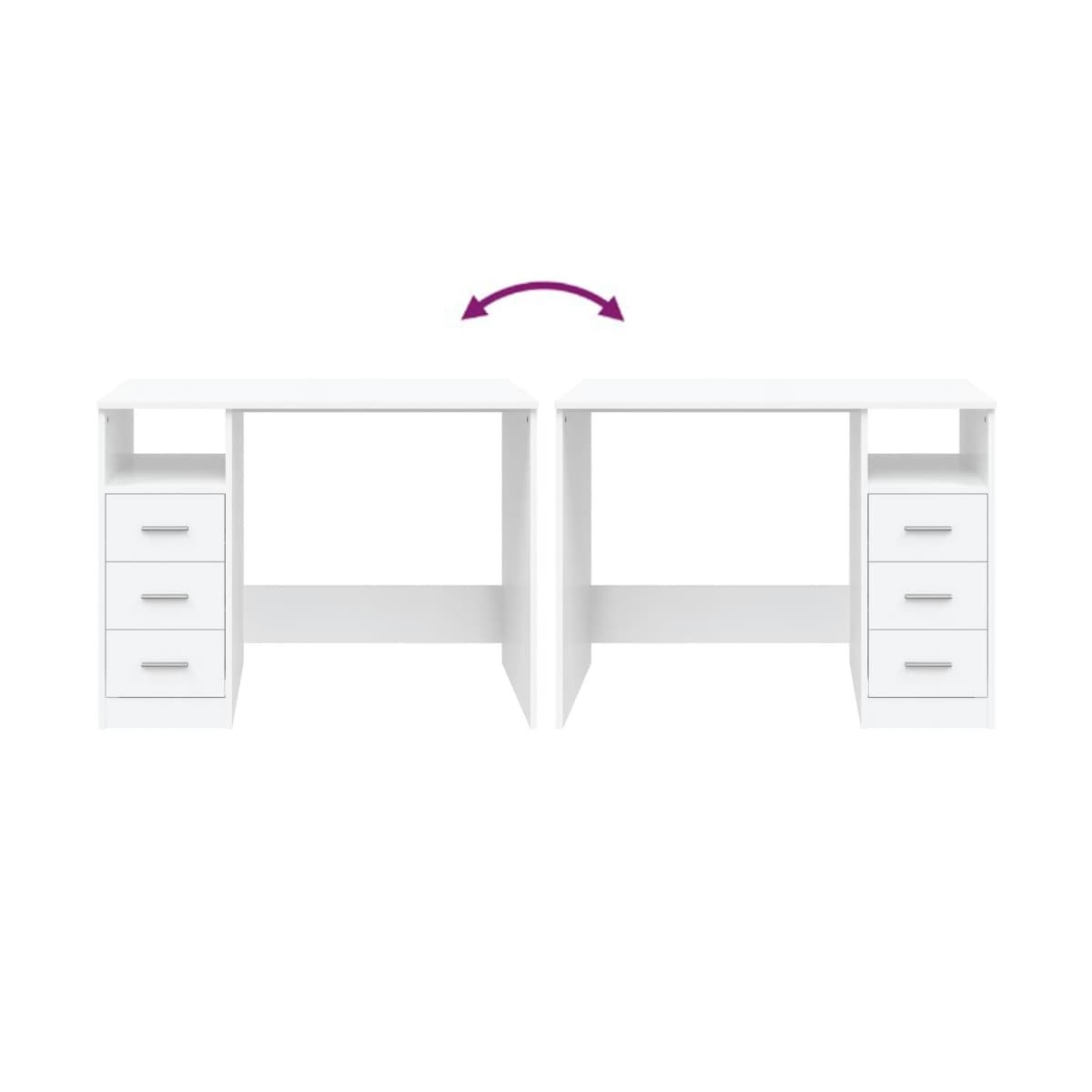 ¡Da un aire elegante a tu estudio o zona de trabajo con este estiloso y moderno escritorio con cajones! Material duradero: La madera contrachapada tiene una calidad excepcional, con una superficie lisa y también cuenta con fuerza, estabilidad y resistencia a la humedad.Amplio espacio de almacenaje: El escritorio de oficina tiene 3 cajones y un compartimento abierto, por lo que ofrece amplio espacio de almacenaje para tener organizado y a mano el material de estudio, como libros, archivos u otros objetos útiles.Multiusos: Este escritorio para ordenador es perfecto para cualquier oficina pequeña, dormitorio o casa con poco espacio, o incuso si lo único que quieres es administrar el espacio que tienes.Superficie fácil de limpiar: El escritorio es fácil de limpiar con un paño húmedo. Advertencia:Para evitar el vuelco, este producto debe usarse con el dispositivo provisto para fijarlo a la pared. Nota: La lona impermeable no está incluidaCada producto viene con un manual de montaje en la caja para facilitar el montaje.