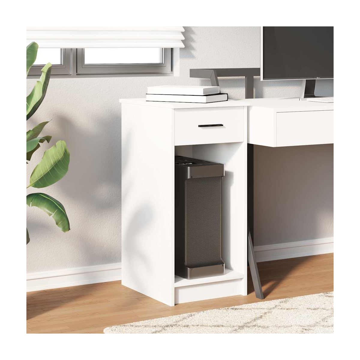 El soporte de torre para computadora ofrece almacenamiento al tiempo que protege la carcasa de su computadora contra caídas y rayones. Material estable y duradero: La madera de ingeniería es un material duradero y estable con una superficie lisa que es resistente a la humedad, la deformación y la rotura, lo que la convierte en una opción fiable para una variedad de proyectos.Amplio espacio de almacenaje: el gabinete para computadora cuenta con un compartimento inferior abierto para una carcasa de computadora, una superficie superior para libros y documentos y un práctico cajón para guardar de forma ordenada cables, cargadores y otros pequeños elementos esenciales, lo que garantiza que su espacio de trabajo se mantenga organizado y sin desorden.Uso versátil: ya sea que funcione como soporte de torre para computadora o como mesa auxiliar, el gabinete se adapta a varios entornos, brindando una combinación ideal de funcionalidad y estilo para oficinas hogareñas y espacios habitables.Fácil de mantener: gracias a su superficie lisa, el toallero para PC es fácil de limpiar con un paño húmedo y requiere menos mantenimiento. Advertencia:Para evitar que vuelque, este producto debe usarse con el dispositivo de fijación a la pared suministrado.