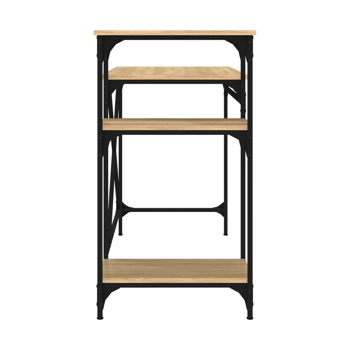 Este escritorio tiene un encanto industrial particular y está diseñado para llamar la atención en casa o en la oficina. Material duradero: La madera contrachapada tiene una calidad excepcional, con una superficie lisa y también cuenta con fuerza, estabilidad y resistencia a la humedad.Estructura estable: La estructura del escritorio de oficina está hecha de hierro. El hierro es un material duro y fuerte. Es el sólido favorito en la construcción industrial y de muebles.Amplio espacio de almacenaje: Con 3 estantes, el escritorio de ordenador ofrece un amplio espacio para mantener las cosas del día a día bien organizadas y al alcance.Práctica superficie: La gran superficie de trabajo de este escritorio te permite colocar el ordenador, los materiales de escritura y otros accesorios.Estilo industrial: El escritorio aporta un encantador estilo industrial a la decoración interior de la casa. Añade el diseño inspirado en las viejas fábricas y espacios industriales a tu casa. Advertencia:Para evitar que vuelque, este producto debe usarse con el dispositivo de fijación a la pared incluido.