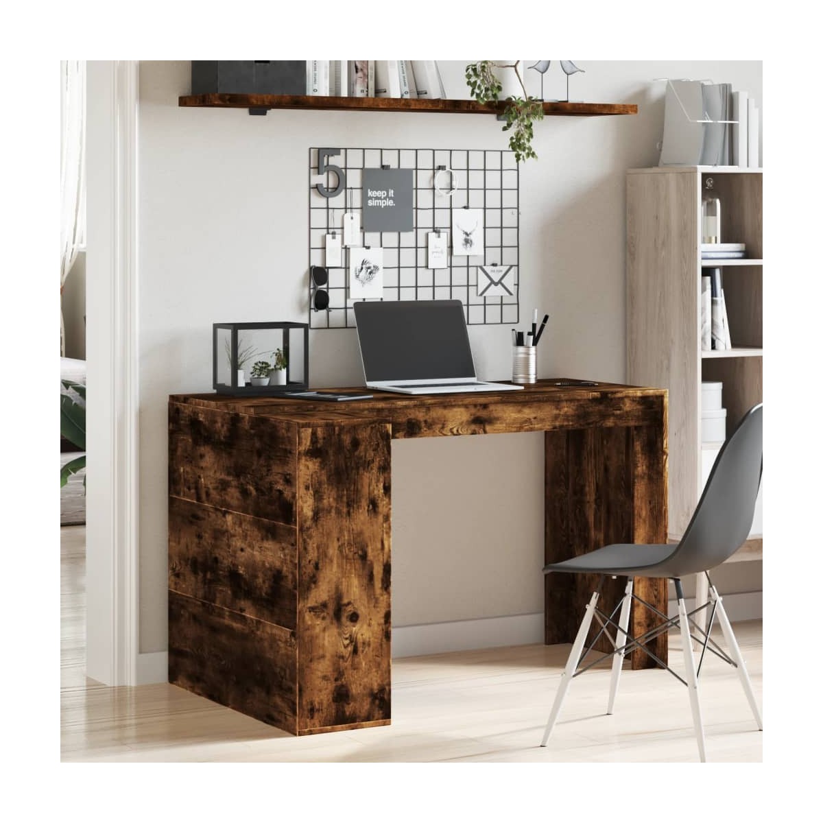 Este escritorio de oficina emana un encanto que lo convertirá en un aporte elegante a tu decoración.Material estable y duradera: La madera de ingeniería es un material duradero y estable con una superficie lisa que es resistente a la humedad, la deformación y la división, lo que la convierte en una opción confiable para una variedad de proyectos.Amplio espacio de almacenaje: Este escritorio de oficina ofrece un amplio espacio de almacenamiento para organizar todas tus carpetas, documentos, recordatorios y equipos informáticos de forma ordenada y al alcance de la mano.Ahorra espacio: Gracias al diseño compacto, la mesa de estudio es perfecta para oficinas pequeñas, residencias o casas pequeñas, o incluso si lo único que quieres es gestionar el espacio que tienes.Superficie fácil de limpiar: El escritorio es fácil de limpiar con un paño húmedo. Advertencia:Para evitar que vuelque, este producto debe usarse con el dispositivo de fijación a la pared suministrado.