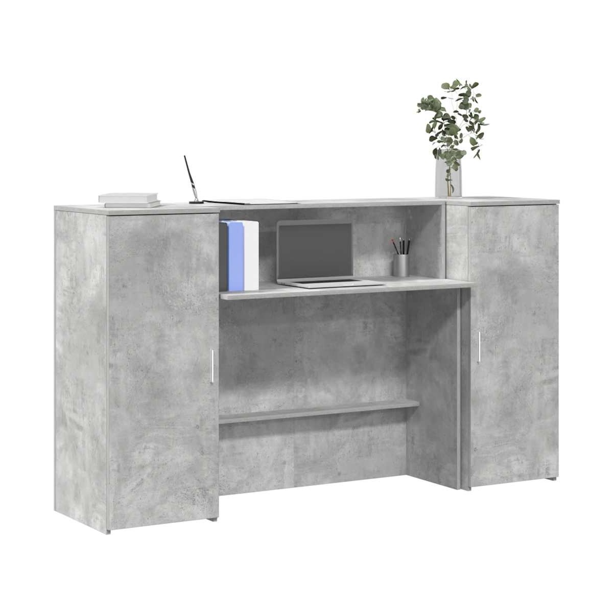 Disfrute de interacciones fluidas, amplio espacio de almacenamiento y un diseño versátil con este mostrador de recepción que cuenta con un mostrador incorporado, lo que lo hace perfecto para diversos entornos. Material estable y duradero: La madera de ingeniería es un material duradero y estable con una superficie lisa que es resistente a la humedad, la deformación y la rotura, lo que la convierte en una opción fiable para una variedad de proyectos.Diseño cuidadoso: Los mostradores altos y los paneles laterales del mostrador de recepción garantizan interacciones discretas, proporcionando un equilibrio de funcionalidad y privacidad tanto para el personal como para los visitantes.Amplio espacio de almacenamiento: el escritorio frontal y el gabinete ofrecen un amplio espacio de almacenamiento para mantener sus suministros de oficina, documentos, artículos personales y otros elementos esenciales bien organizados y al alcance de la mano.Aplicación versátil: este mostrador de caja es perfecto para una variedad de entornos, incluidas oficinas corporativas, vestíbulos de hoteles, clínicas médicas y salones de belleza, satisfaciendo diversas necesidades profesionales.Fácil instalación: instrucciones claras y un proceso de montaje sencillo hacen que este mostrador de recepción sea fácil de instalar, de forma rápida y sin esfuerzo. Advertencia:Para evitar que vuelque, este producto debe usarse con el dispositivo de fijación a la pared suministrado. Información útil:Los tornillos y los tacos para el interior de la pared no están incluidos. Busca y utiliza tornillos y tacos adecuados para tus paredes. Si no lo tienes claro, busca asesoramiento profesional. Lee y sigue cada paso de las instrucciones cuidadosamente.