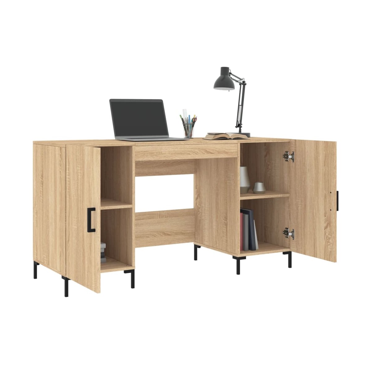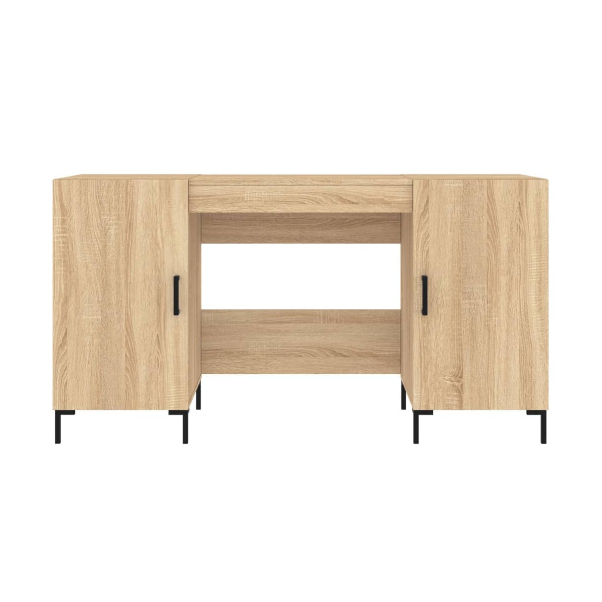 ¡Da un aire elegante a tu estudio o zona de trabajo con este práctico escritorio! Material duradero: La madera contrachapada tiene una calidad excepcional, con una superficie lisa, y también cuenta con fuerza, estabilidad y resistencia a la humedad.Amplio almacenaje: Los 4 compartimentos con puertas en el lateral del escritorio de oficina ofrecen un amplio espacio de almacenaje para tener a mano tus materiales de estudio, como libros, carpetas u otros objetos útiles.Usos amplios: Diseñado para espacios reducidos, este escritorio de estudio es perfecto para residencias, apartamentos o pequeños despachos.Práctico diseño: Las patas de hierro dan un estilo industrial a la casa además de garantizar la estabilidad. Los tiradores cuadrados de hierro de las puertas son elegantes y duraderos. Advertencia:Para evitar que vuelque, este producto debe usarse con el dispositivo de fijación a la pared incluido.