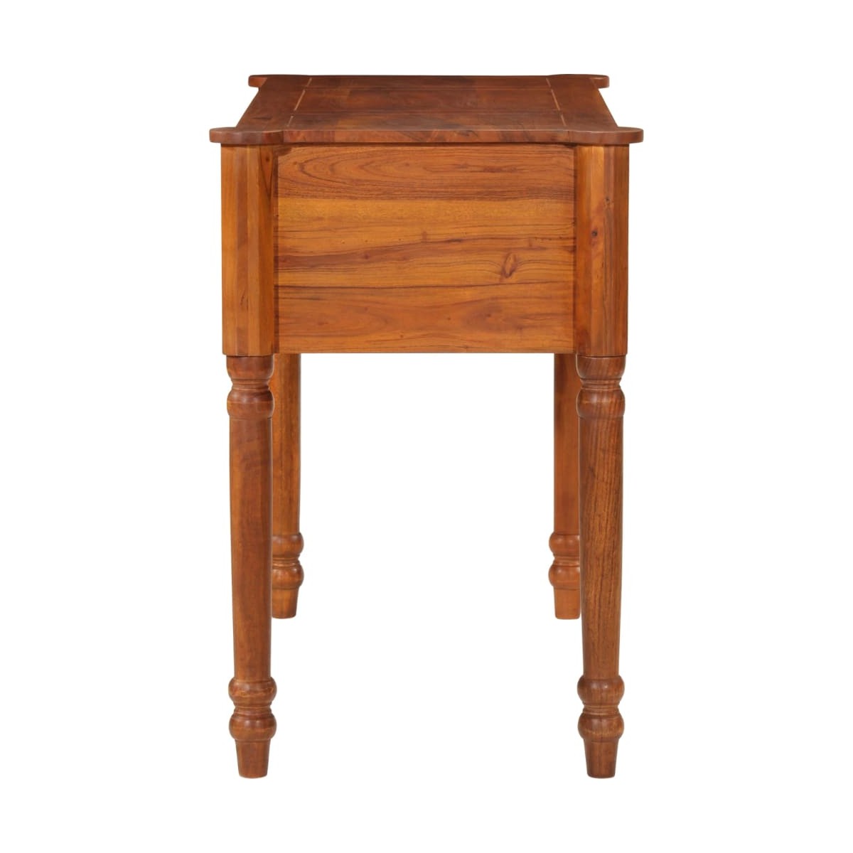 Este escritorio de madera con diseño antiguo será un gran aporte para la decoración del salón. Madera maciza de acacia: Este escritorio de oficina está hecho de madera maciza de acacia con un acabado amielado. La madera de acacia es un bonito material natural. Se trata de una madera dura tropical, densa, robusta y duradera.Amplio espacio: La robusta superficie de la mesa de estudio es ideal para colocar el ordenador, libros u objetos decorativos como jarrones o macetas. Los cajones son ideales para guardar diversos objetos pequeños organizados y al alcance de la mano.Tirador de metal: El escritorio viene con un tirador metálico que facilita la apertura y el cierre y añade un plus estético.Superficie fácil de limpiar: El escritorio para el despacho es fácil de limpiar con un paño húmedo. Información útil:Cada artículo es único, con variaciones de color y veta. La entrega es aleatoria garantizando la exclusividad y la individualidad del producto.