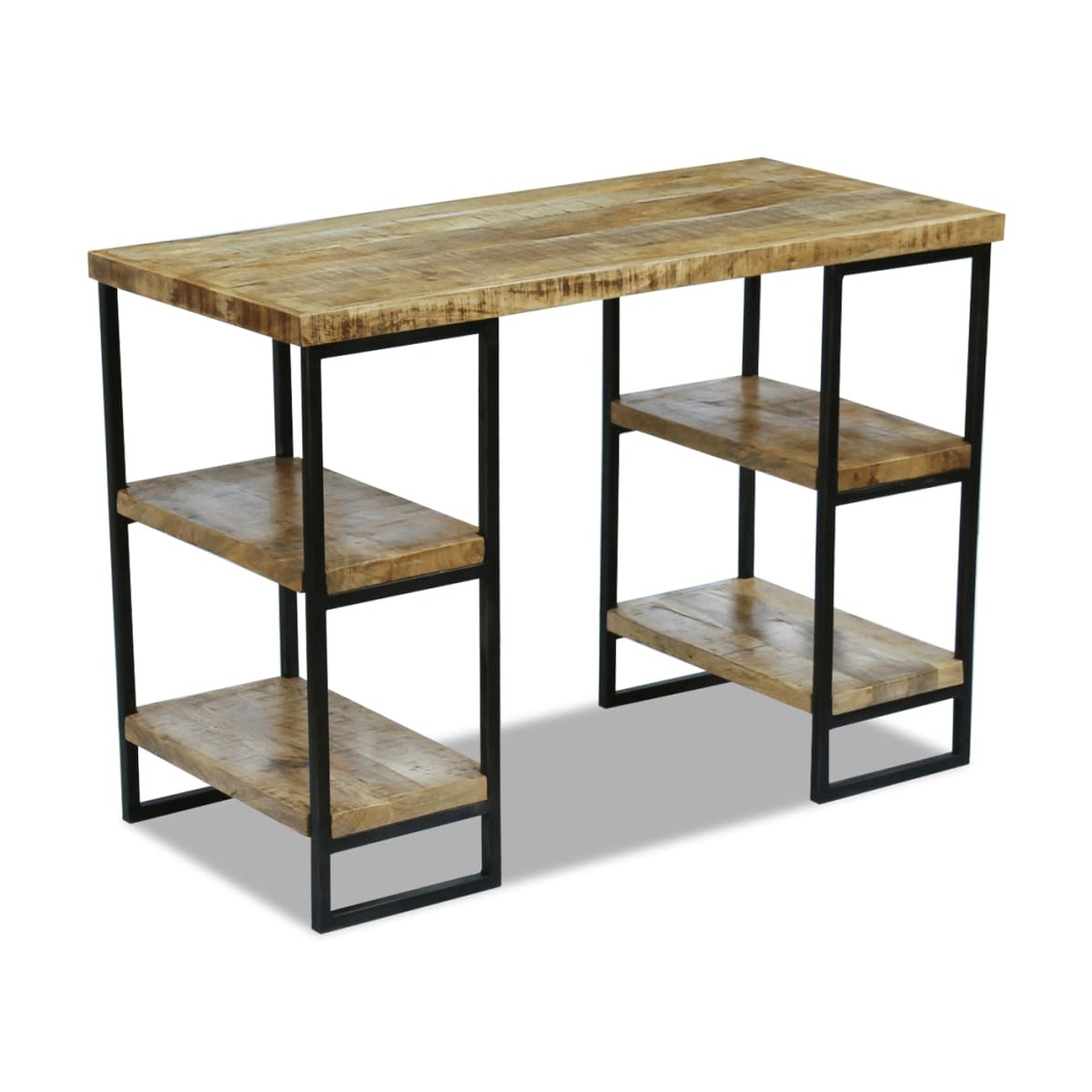Este escritorio de oficina de madera de estilo industrial, hecho de madera de mango maciza con estructura de acero fuerte, será un aporte atemporal para tu hogar. La mesa proporciona una superficie estable y segura en la que puedes colocar bebidas, artículos decorativos y el ordenador. Tiene dos capas de estantes a cada lado, que proporcionan un amplio espacio para guardar objetos pequeños y medianos, como llaves, blocs de notas, libros, etc. El escritorio de oficina se puede utilizar también como un escritorio para el ordenador, un escritorio de estudio, un escritorio de lectura u otros, ya que se ajusta perfectamente en su casa y juega un papel práctico.