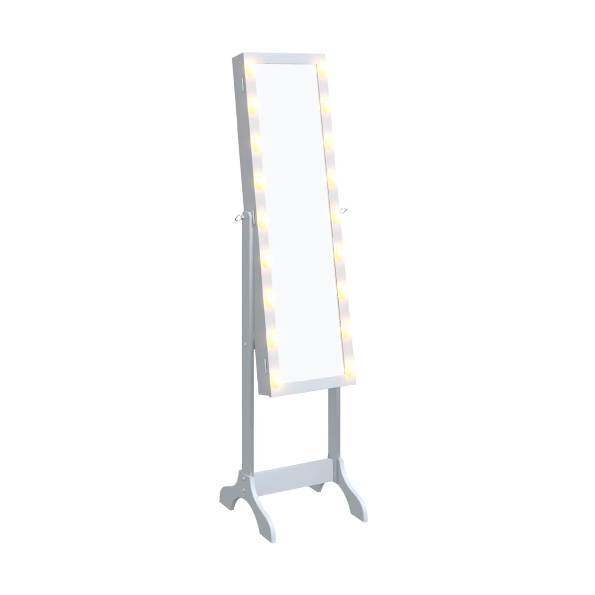 Este espejo de pie con LED, con un diseño elegante, será un gran aporte decorativo para el pasillo, el dormitorio, el vestidor, el guardarropa, etc. Material duradero: La madera contrachapada tiene una calidad excepcional, con una superficie lisa y también cuenta con fuerza, estabilidad y resistencia a la humedad.Luces LED: Las bombillas LED integradas alrededor del espejo iluminan tu belleza.Imagen nítida: La cara de cristal del espejo proporciona una imagen clara. Así, podrás disfrutar de un reflejo bello y natural cuando te pongas delante.Plus de espacio de almacenaje: Este espejo de suelo ofrece un amplio espacio detrás para acceder a tus cosas fácilmente.Decoración exclusiva: El espejo da un toque instantáneo de elegancia, glamur y romance a la casa.