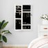 ¡Guarda las joyas y los perfumes de forma discreta y elegante con este estiloso espejo con joyero! Material duradero: La madera de ingeniería es de una calidad excepcional, con una superficie lisa, y también cuenta con fuerza, estabilidad y resistencia a la humedad. Hecho de madera de ingeniería, el joyero se limpia fácilmente con un paño húmedo. Amplio espacio de almacenaje: El espejo de almacenaje posee muchos ganchos, perchas y estantes para mantener las joyas ordenadas y al alcance de la mano.Práctico espejo: Con un práctico espejo, este joyero es ideal para prepararse y maquillarse.Protección considerada: El joyero tiene una puerta con cerradura y viene con 2 llaves para garantizar la seguridad de los artículos. Además, la suave funda de tela del interior no solo aporta elegancia, sino que también protege las queridas joyas de arañazos.Diseño que ahorra espacio: Cuelga el joyero con espejo sobre la puerta con los ganchos incluidos o colócalo en la pared para no ocupar espacio en el suelo. Información útil:Se incluyen tornillos para montaje en pared.