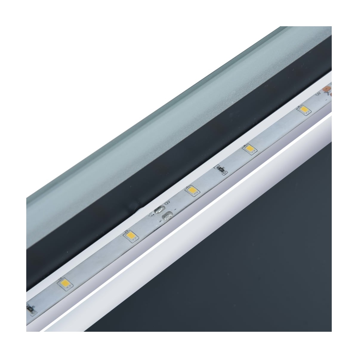 Nuestro espejo de baño con LED ofrece una luz brillante combinada con un estilo sofisticado y un diseño funcional. Este espejo con dos líneas de luces LED crea un ambiente agradable en el cuarto de baño. Con estos LED, tendrás una imagen precisa y clara de ti mismo cada vez que te mires en el espejo y te ofrece la luz más auténtica para maquillarte, asearte y cuidarte la piel. Puedes encender y apagar la luz fácilmente con el interruptor con sensor táctil. También ha sido sometido a las pruebas correspondientes al grado IP44 para garantizar su total seguridad en un entorno húmedo.Nuestro espejo de baño con LED ofrece una luz brillante combinada con un estilo sofisticado y un diseño funcional. Este espejo con dos líneas de luces LED crea un ambiente agradable en el cuarto de baño. Con estos LED, tendrás una imagen precisa y clara de ti mismo cada vez que te mires en el espejo y te ofrece la luz más auténtica para maquillarte, asearte y cuidarte la piel. Puedes encender y apagar la luz fácilmente con el interruptor con sensor táctil. También ha sido sometido a las pruebas correspondientes al grado IP44 para garantizar su total seguridad en un entorno húmedo. Además, incluye un espejo de maquillaje adicional para ayudarte a ver ciertos detalles. La entrega incluye 1 espejo LED, 1 adaptador y herramientas de montaje.