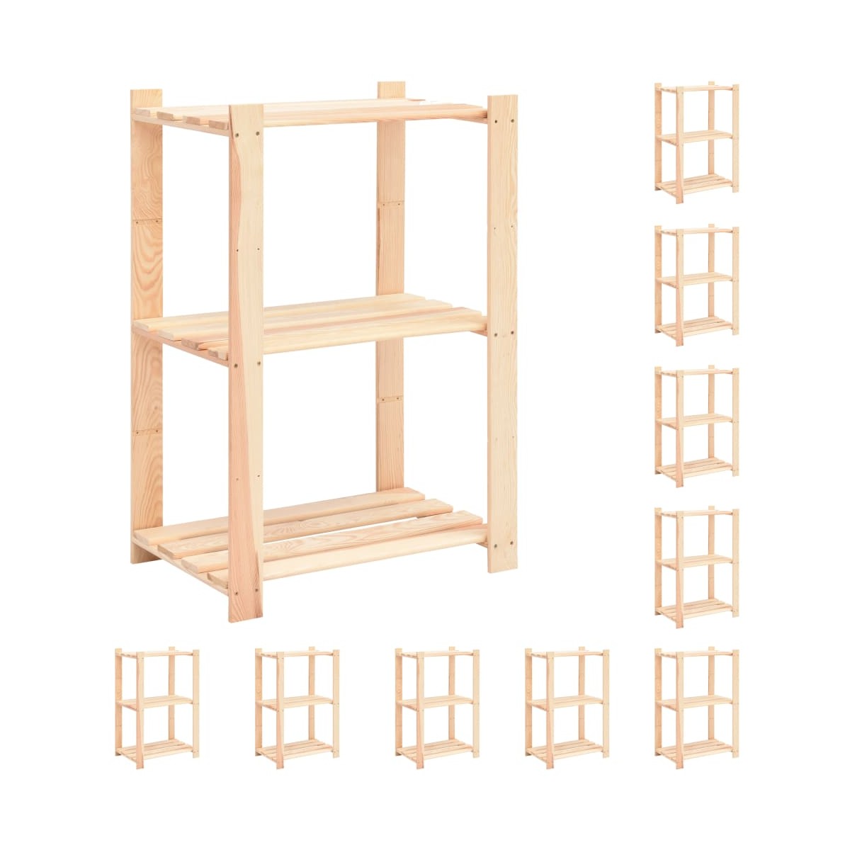 Nuestro estante de almacenamiento de madera maciza es una solución ideal para el almacenamiento doméstico y comercial, en la cocina, el lavadero, el sótano, el baño, la oficina, el garaje, el taller o cualquier otro lugar donde puedas necesitar espacio de almacenamiento adicional, ya que proporciona suficiente espacio para guardar todos los artículos perfectamente organizados. Hecha de madera maciza de pino, la estantería de almacenamiento es muy duradera. Puede mantener su color natural o dar una capa de pintura u otro acabado de su color favorito. Gracias a los materiales de montaje incluidos, nuestra unidad de almacenamiento es fácil de montar. La entrega incluye 10 estanterías.