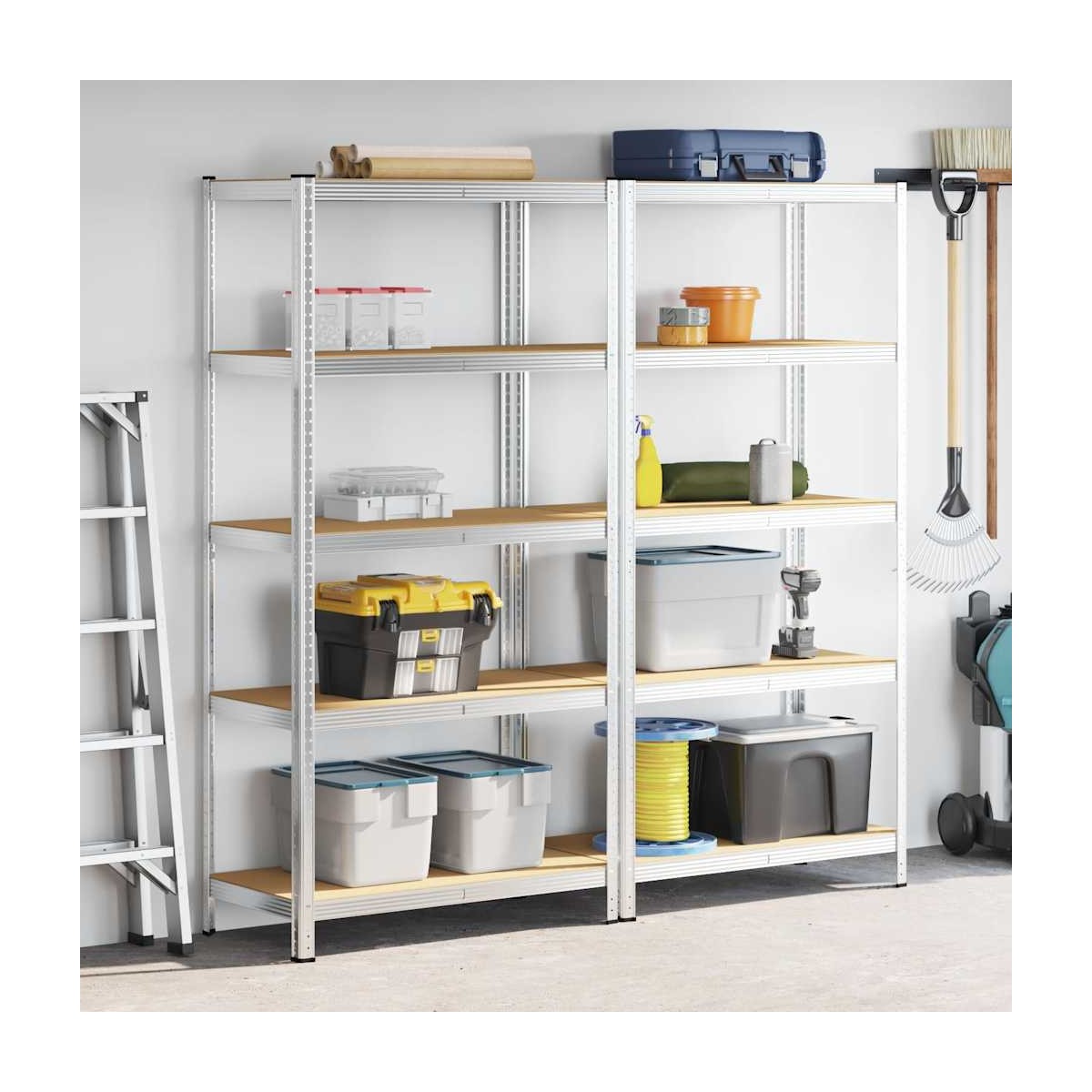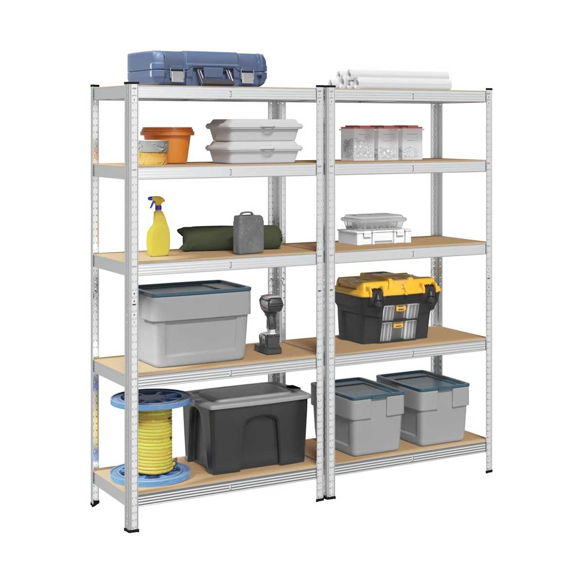 Estos estantes resistentes son una excelente opción para el almacenamiento tanto residencial como comercial, ya que brindan mucho espacio para mantener todos los artículos perfectamente organizados. Material resistente: La estantería de almacenaje consta de una estructura de acero y tablas de madera contrachapada. Las estructuras de acero garantizan su solidez y estabilidad mientras que la madera contrachapada ofrece fuerza, estabilidad y resistencia a la humedad.Fuerte capacidad de carga: gracias al material extra grueso, las barras de refuerzo debajo de cada estante y el diseño de estantes sin pernos, este estante resistente tiene una gran capacidad de carga.Almacenamiento flexible: este estante de almacenamiento se puede dividir en dos estantes pequeños separados. Además, las capas son ajustables en altura. Por lo tanto, el estante proporciona un amplio espacio de almacenamiento para todos los artículos que desea guardar y siempre mantiene su espacio ordenado y bien organizado. Advertencia:Para evitar que vuelque, este producto debe usarse con el dispositivo de fijación a la pared (no incluido).