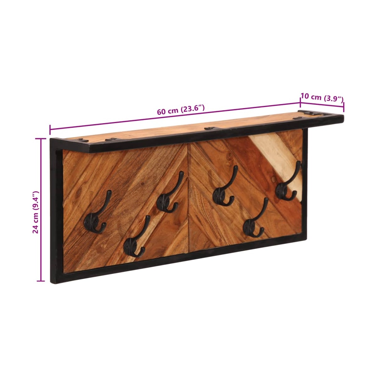 ¡Mantén tu pasillo, sala de estar u otros lugares en orden con este perchero montado en la pared! Material duradero: La madera maciza de acacia es un hermoso material natural. La madera de acacia es una madera dura tropical, densa, robusta y duradera.Ganchos prácticos: La percha está equipada con 6 ganchos de hierro para colgar bolsos, abrigos, paraguas, llaves, etc., lo que puede ahorrar mucho espacio en la habitación.Ahorro de espacio: Este tablero de clavijas se puede montar en la pared para agregar espacio de almacenamiento adicional. De esa forma, puedes liberar espacio en el piso y tener tu ambiente ordenado y limpio.Fácil de mantener: Este perchero se limpia fácilmente con un paño húmedo y requiere menos mantenimiento. Información útil:Los tornillos y los tacos para el interior de la pared no están incluidos. Recomendamos encontrar y utilizar tornillos y tacos adecuados específicamente para las paredes. Si no estás seguro, puedes consultar con un profesional. Lee y sigue cada paso de las instrucciones.Cada artículo es único, con variaciones de color y veta. La entrega es aleatoria garantizando la exclusividad y la individualidad del producto.