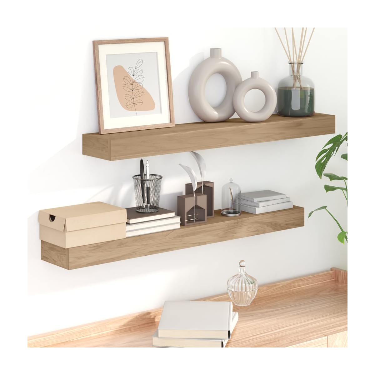 ¡Maximiza el espacio de la casa y dale estilo a tus paredes con estos estantes de pared de madera! Madera maciza de teca: La madera maciza de teca es un hermoso material natural. Ha sido curada, secada al horno y luego tratada con un acabado rústico. La madera de teca es conocida por su excepcional fuerza y resistencia a la intemperie.Diseño de pared: Estos estantes flotabtes se pueden montar en la pared para ganar un plus de espacio de almacenaje. De este modo, podrás aprovechar al máximo el espacio del suelo y mantener la zona limpia.Función decorativa: Estas elegantes baldas de pared pueden convertir una pared vacía en un elemento exclusivo y están destinadas a ser el centro de atención de cualquier estancia. Nota:Los tornillos y los tacos para el interior de la pared no están incluidos. Busca y utiliza tornillos y tacos adecuados para tus paredes. Si no lo tienes claro, busca asesoramiento profesional. Lee y sigue cada paso de las instrucciones cuidadosamente.Cada producto viene con un manual de montaje en la caja para facilitar el montaje.