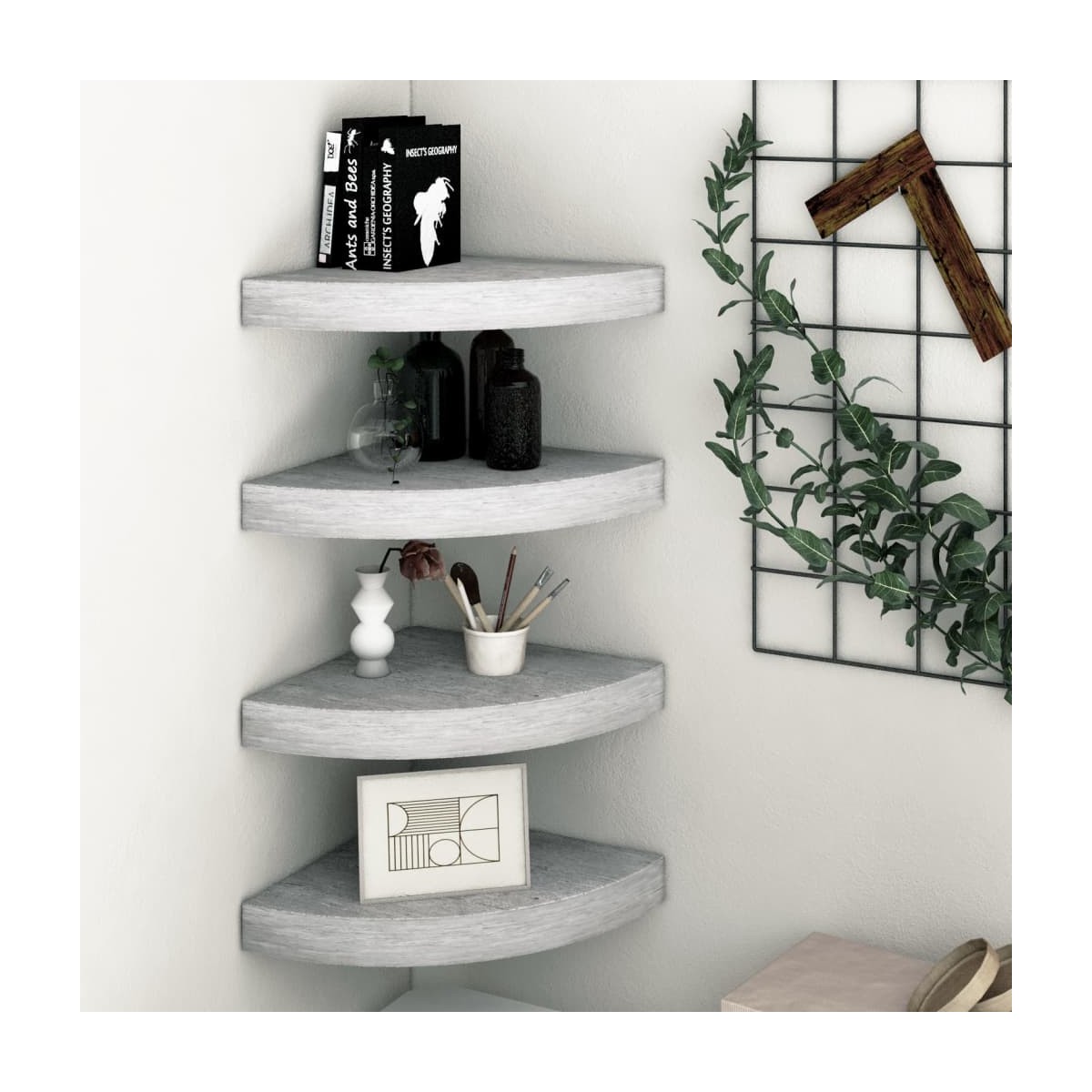 Estos elegantes estantes esquineros son ideales para exhibir tus libros, objetos decorativos, fotografías, premios, etc. Este estante de exhibición, hecho de panal de MDF y metal resistente, es estable y duradero. Con un sistema de montaje invisible, el estante de pared es fácil de instalar y sirve como el lugar perfecto para guardar artículos como premios, libros, coleccionables, adornos, etc. ¡Este estante flotante se adapta a cualquier decoración y convertirá una pared vacía en un elemento de diseño!