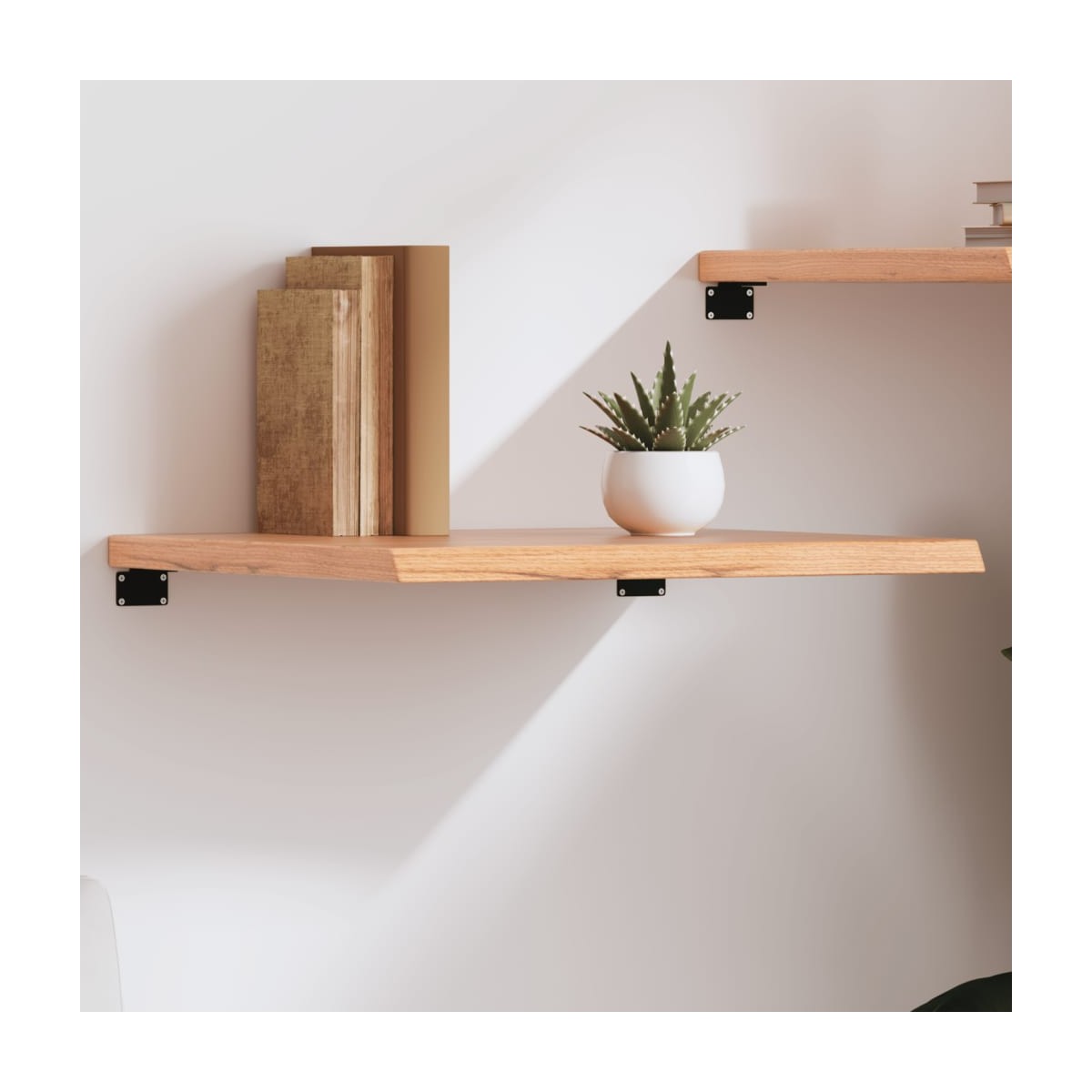 ¿Necesitas más opciones de almacenaje pero no tienes espacio de sobra? Este estante de pared de estilo rústico es la solución perfecta. Construcción duradera: El estante de pared está hecho de madera maciza de roble, un hermoso material natural. La madera de roble tiene un color marrón medio y unas vetas densas, que refuerzan su aspecto único.Usos versátiles: Además de un estante, este estante de almacenaje se puede combinar con bases diferentes según lo que necesites. Se puede utilizar como encimera de baño, superficie de armario, de escritorio, de mesa, etc.Superficie tratada: El estante de madera ha sido barnizado por lo que está listo para usar ya que no necesita un acabado adicional.Hecho a mano con borde natural: Este tablero de estante está hecho a mano con un borde natural. Debido a que los nudos, las grietas, las formas ligeramente curvadas y los tonos de color son parte de la madera de roble, cada estante tiene un carácter único. La entrega es aleatoria, que garantiza la exclusividad e individualidad del producto. Información útil:Al ser un producto natural, la madera puede presentar nudos e imperfecciones que rellenamos con rellenos para garantizar un aspecto liso.